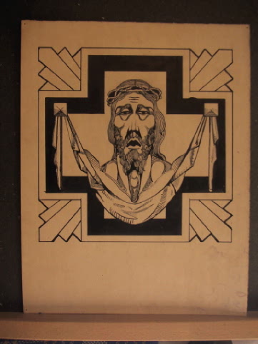 Obra : Exce Hoomo cabeza de cristo coronado de espinas y lienzo debajo de la barbilla enmarcado con lazo negro y ancho con clavos sobre puestos