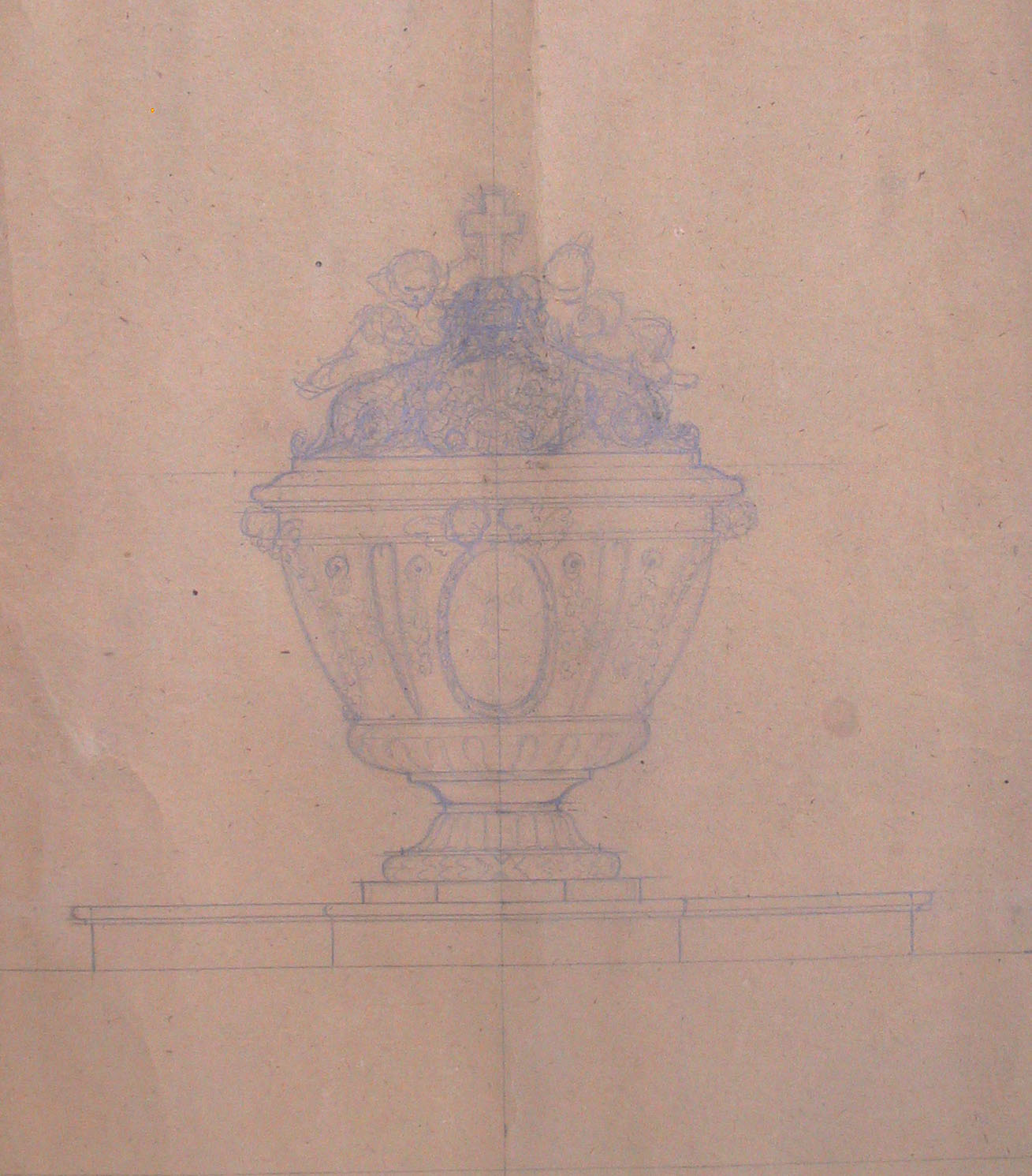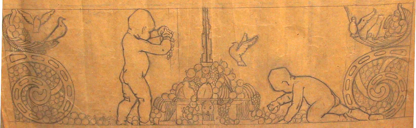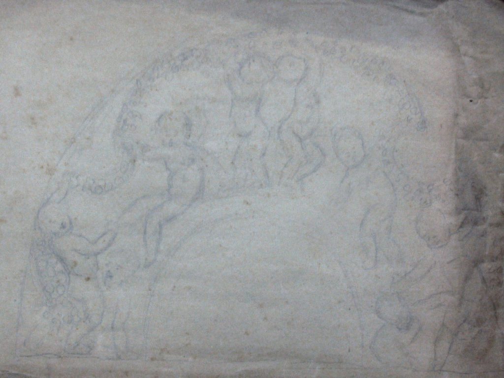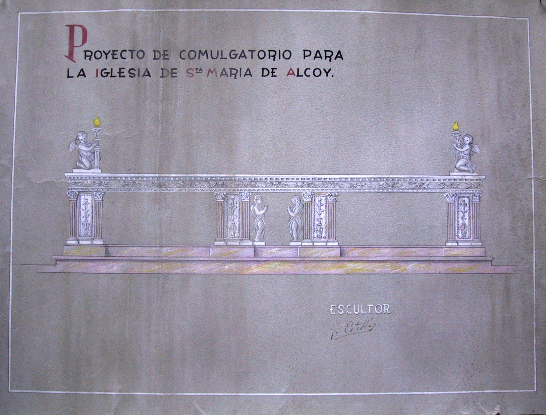 Obra : Boceto de pulpitocon querubines en el pié, con medallones en su cuerpo y angeles en la umbrela es el boceto que se ralizo para la iglesia de santos juanes.