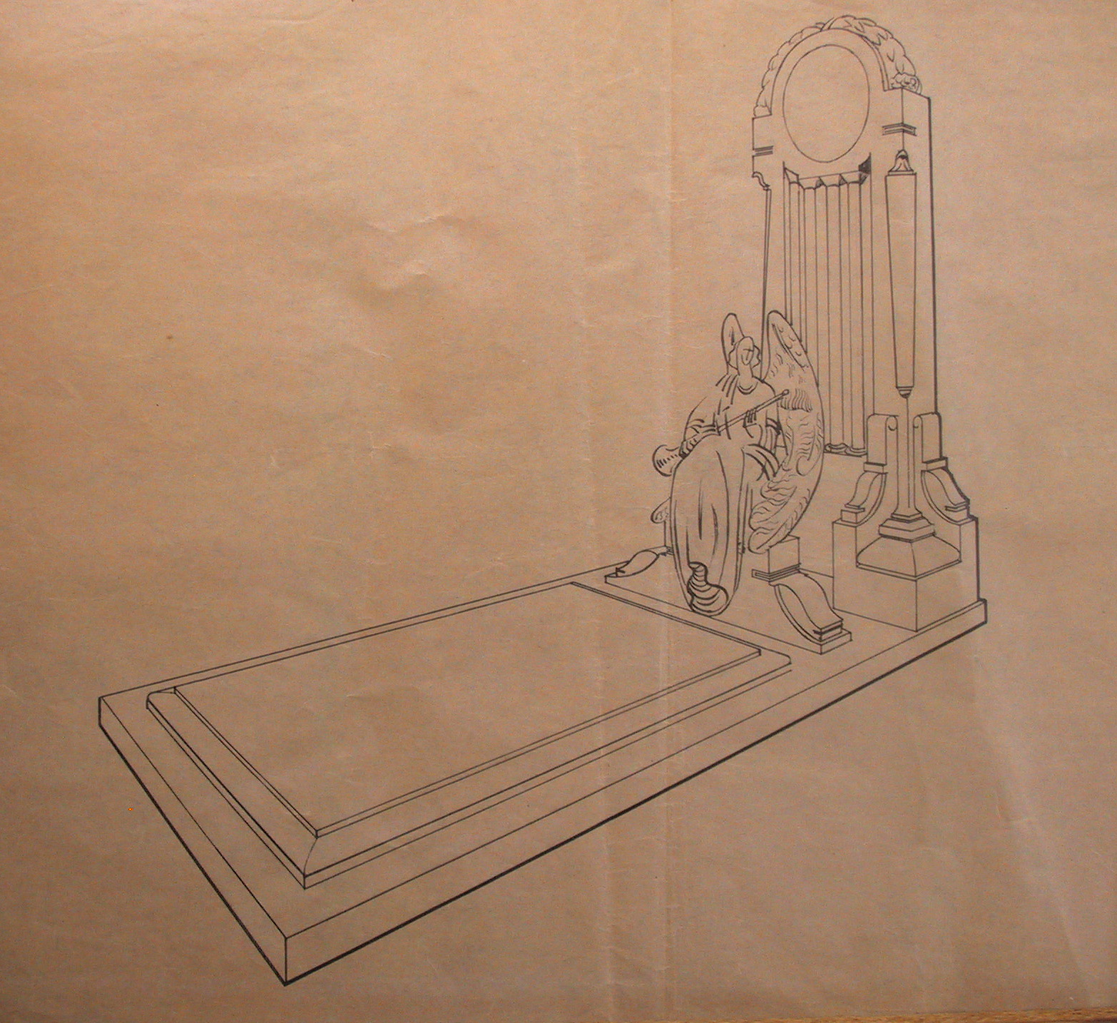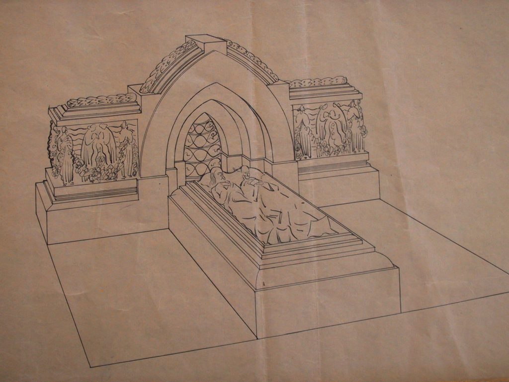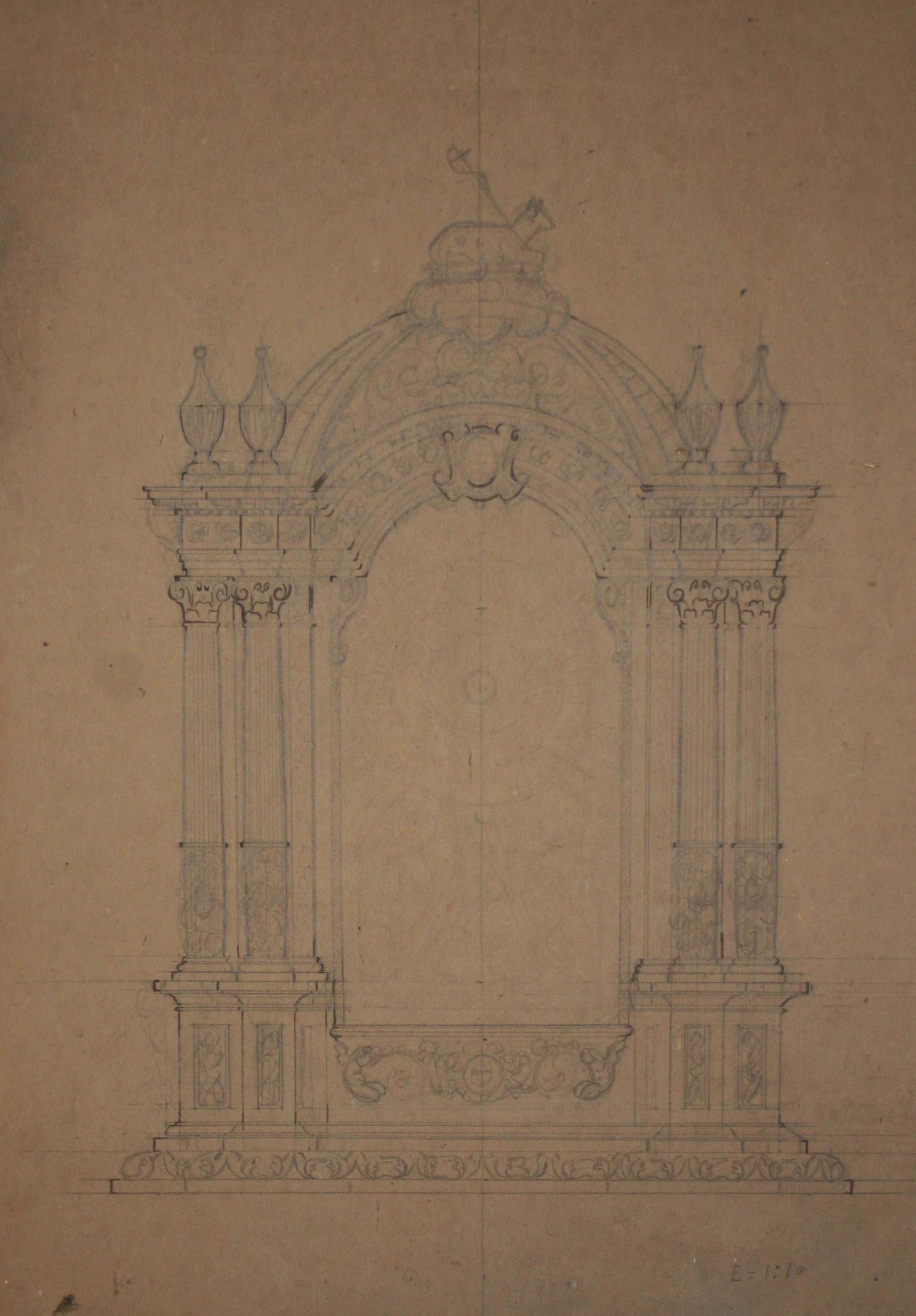 Obra : Dibujo de retablo con altar y figura central.