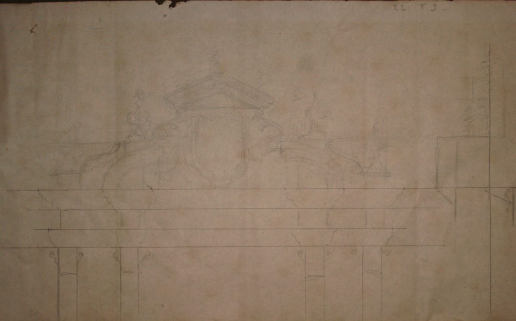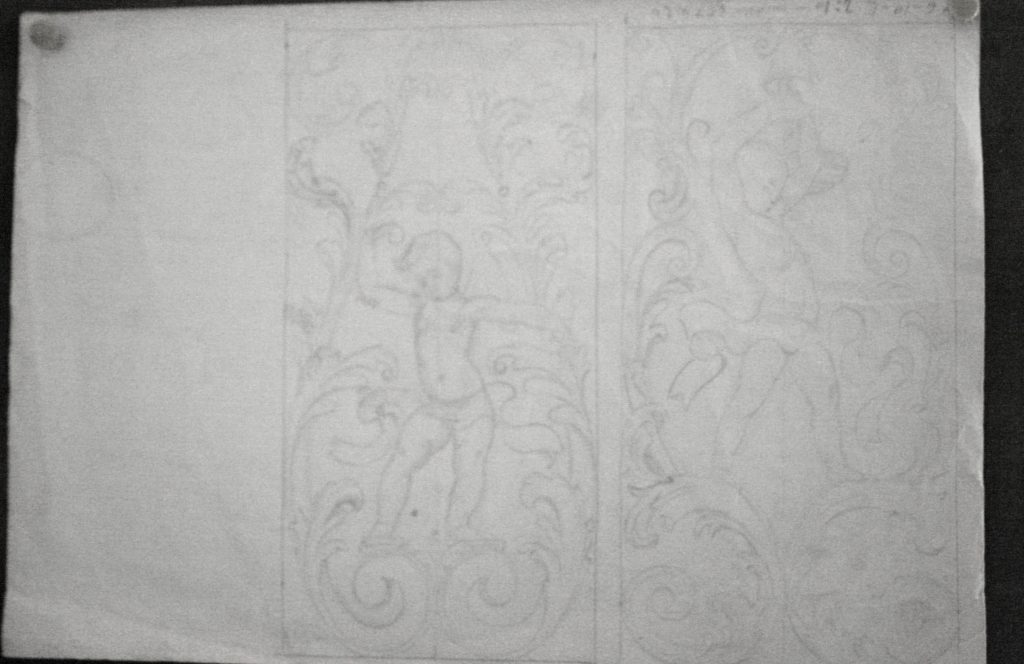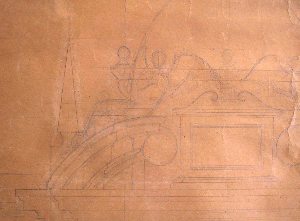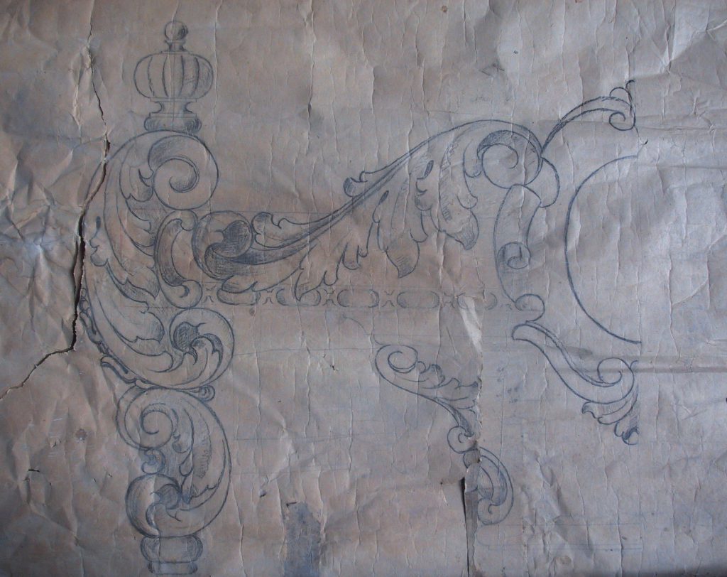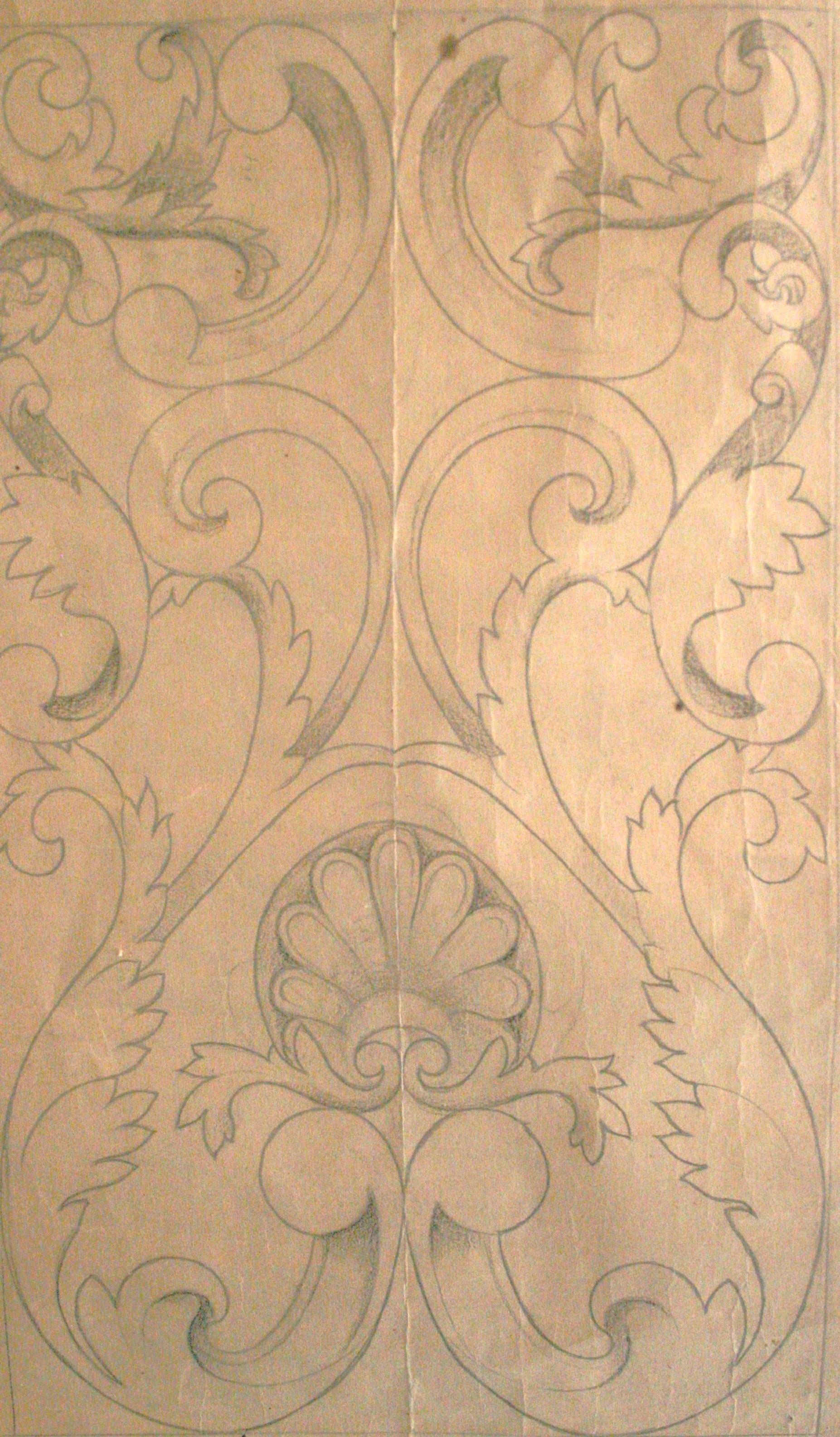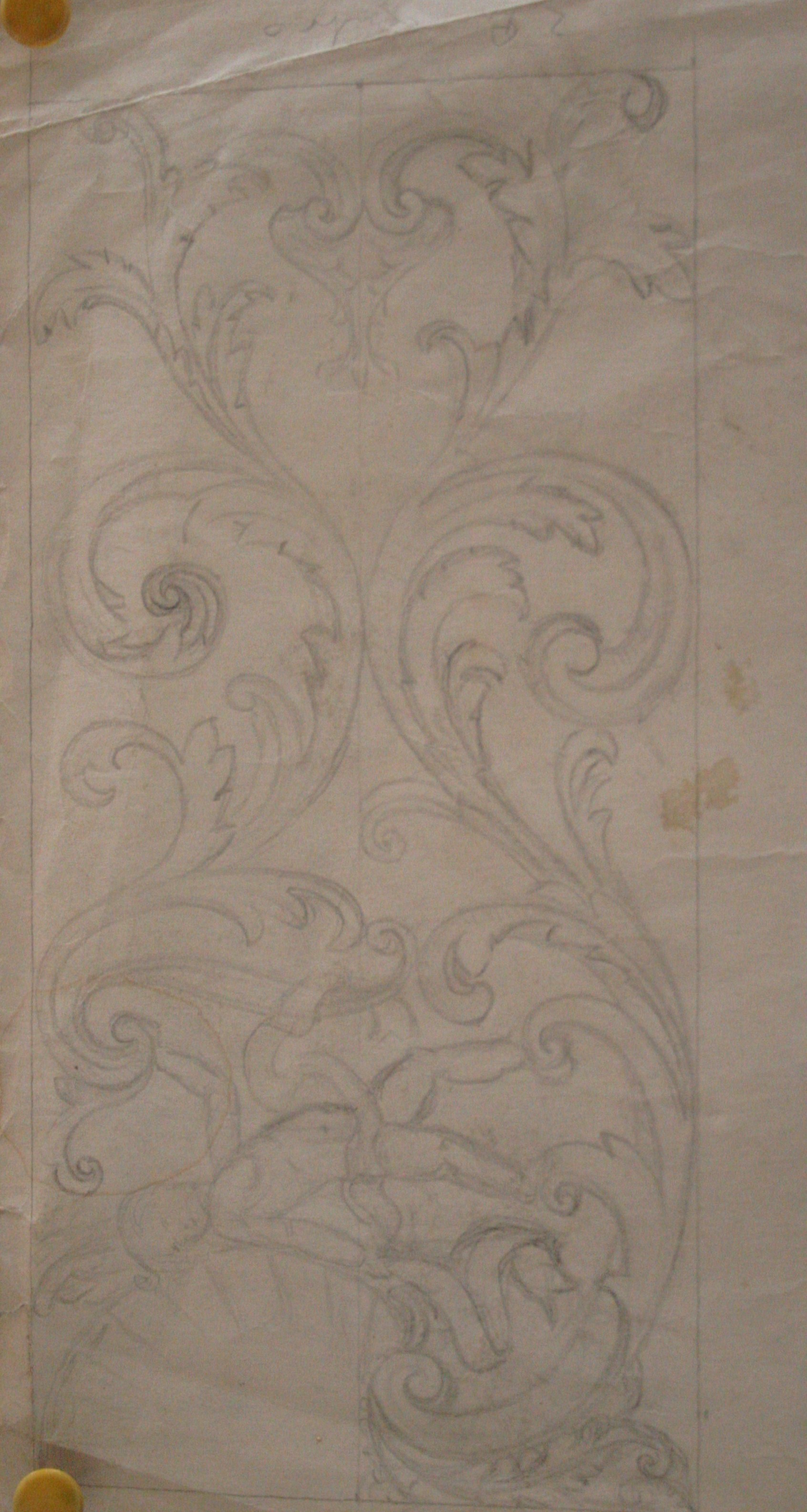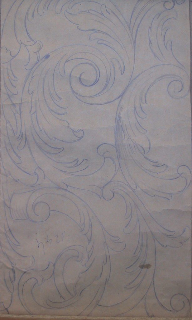 Obra : Dibujo de bolutas y hojas de acanto.