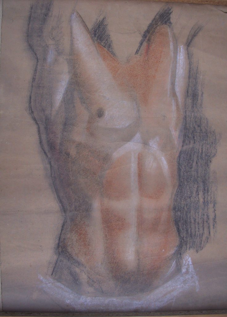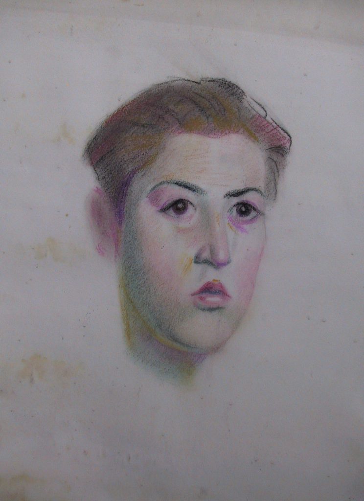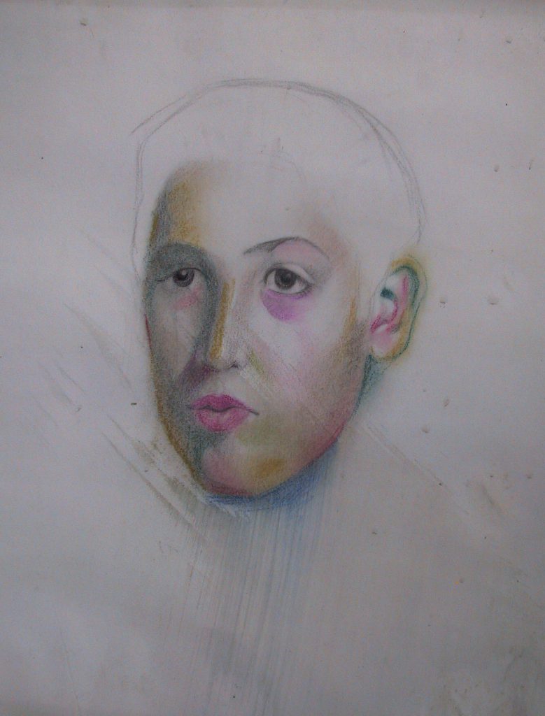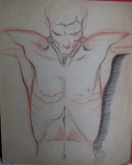 Material: Lápiz graso sobre papel con acuarela.