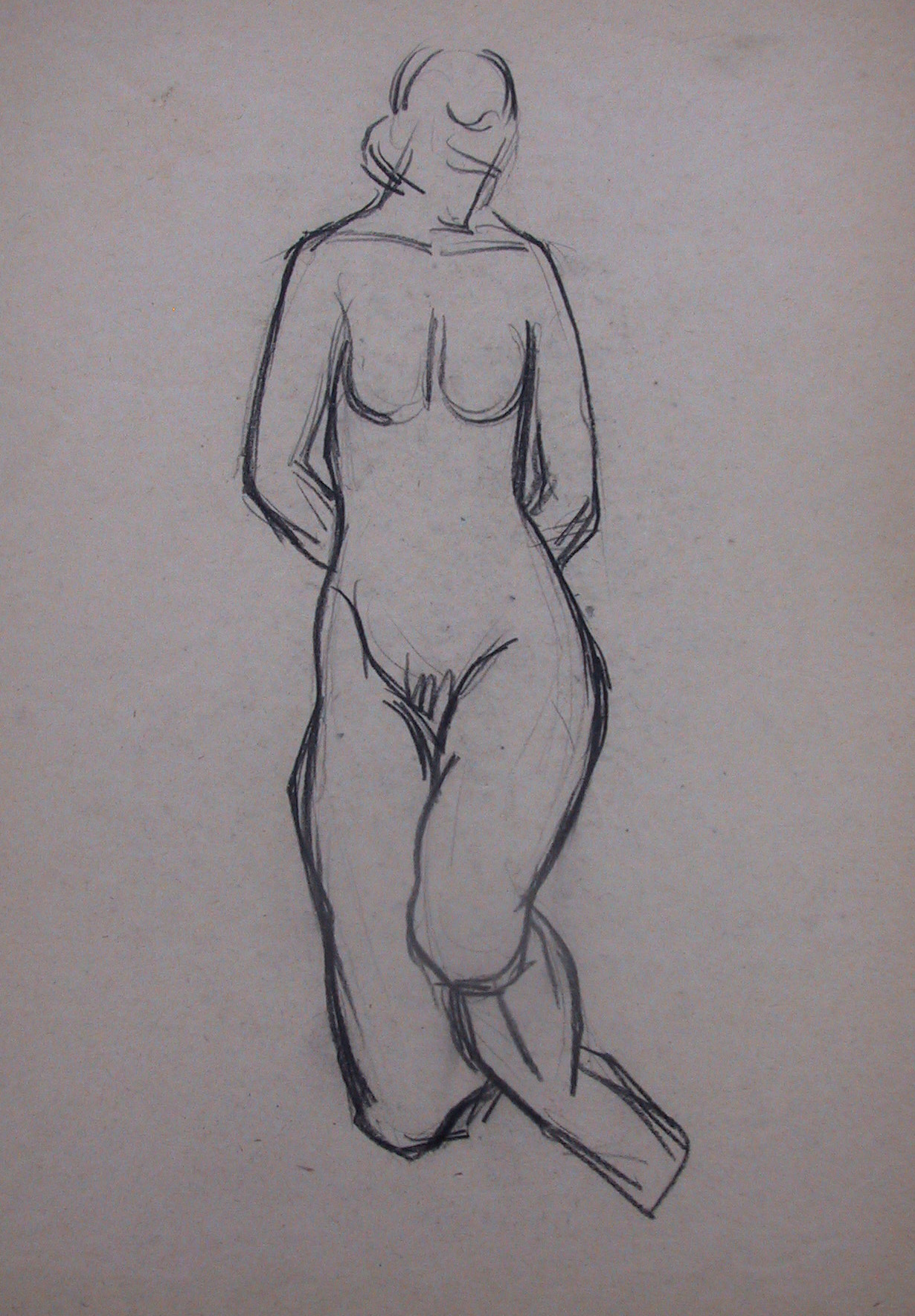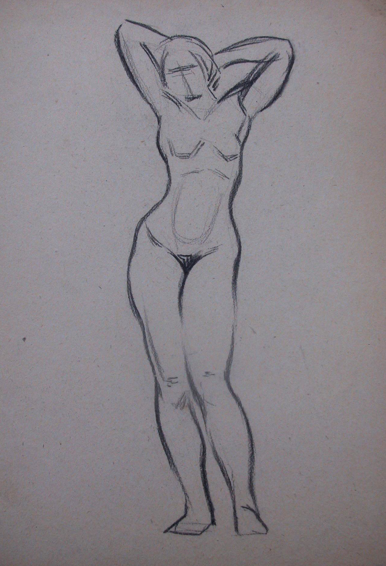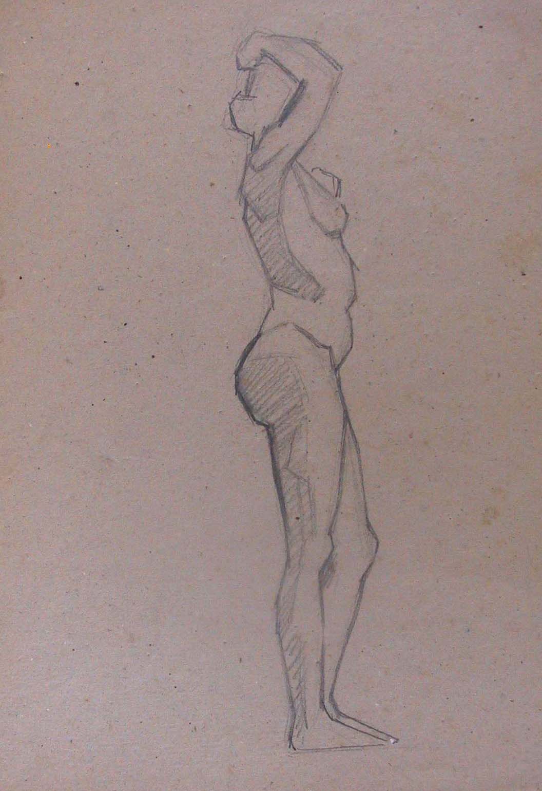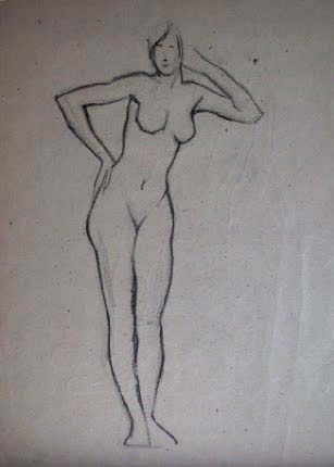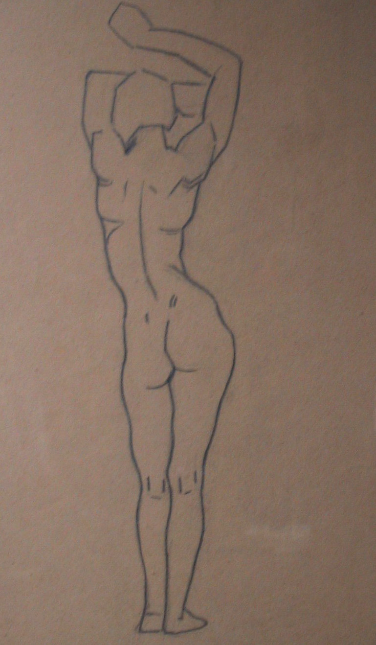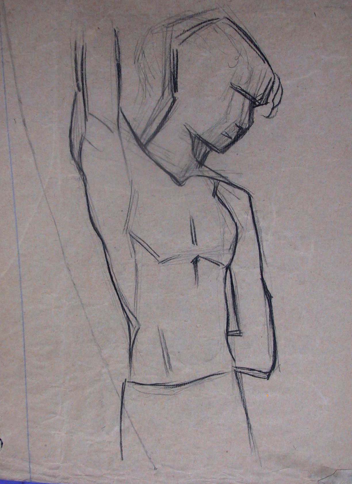 Obra : Mujer de frente con los brazos en alto y manos en la nuca.