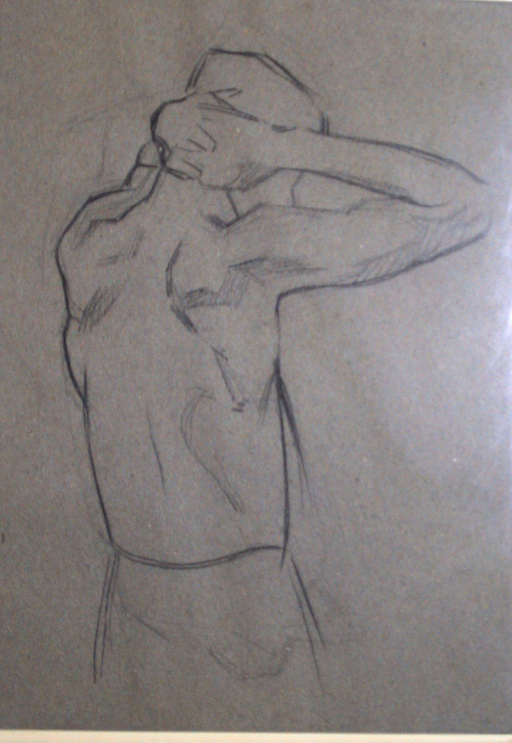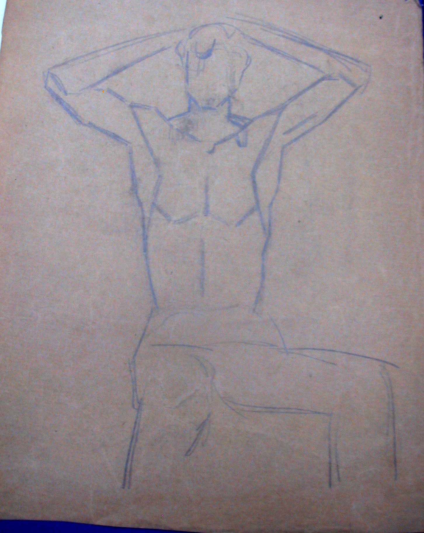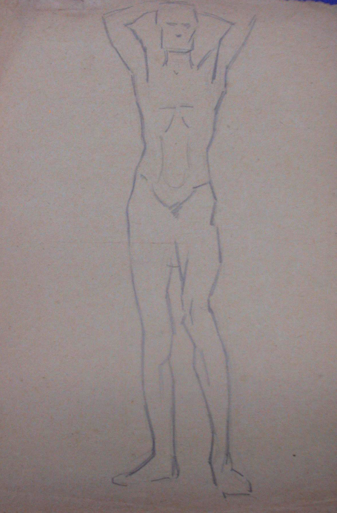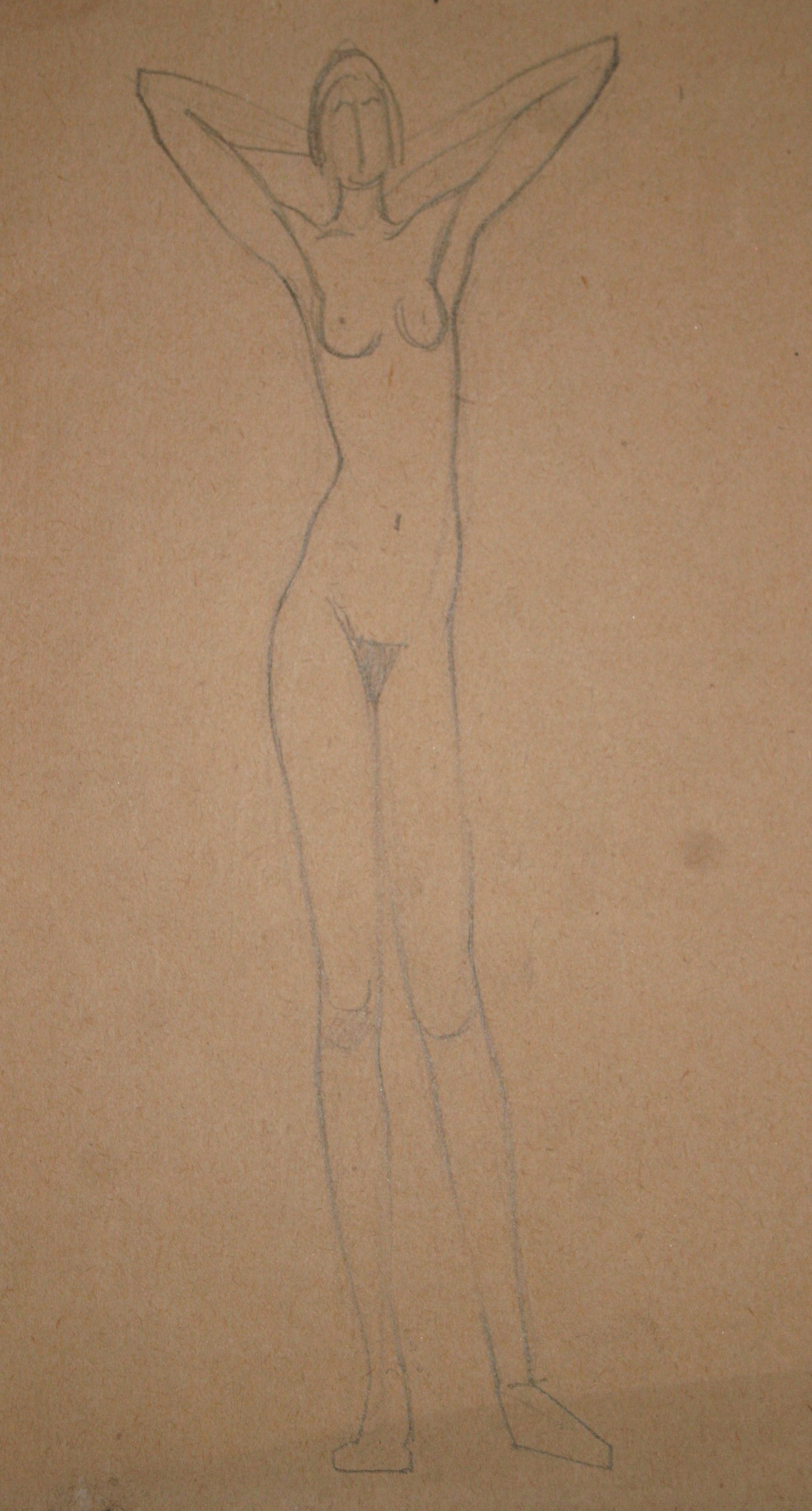 Obra : Mujer de frente con los brazos en alto y manos en la nuca.