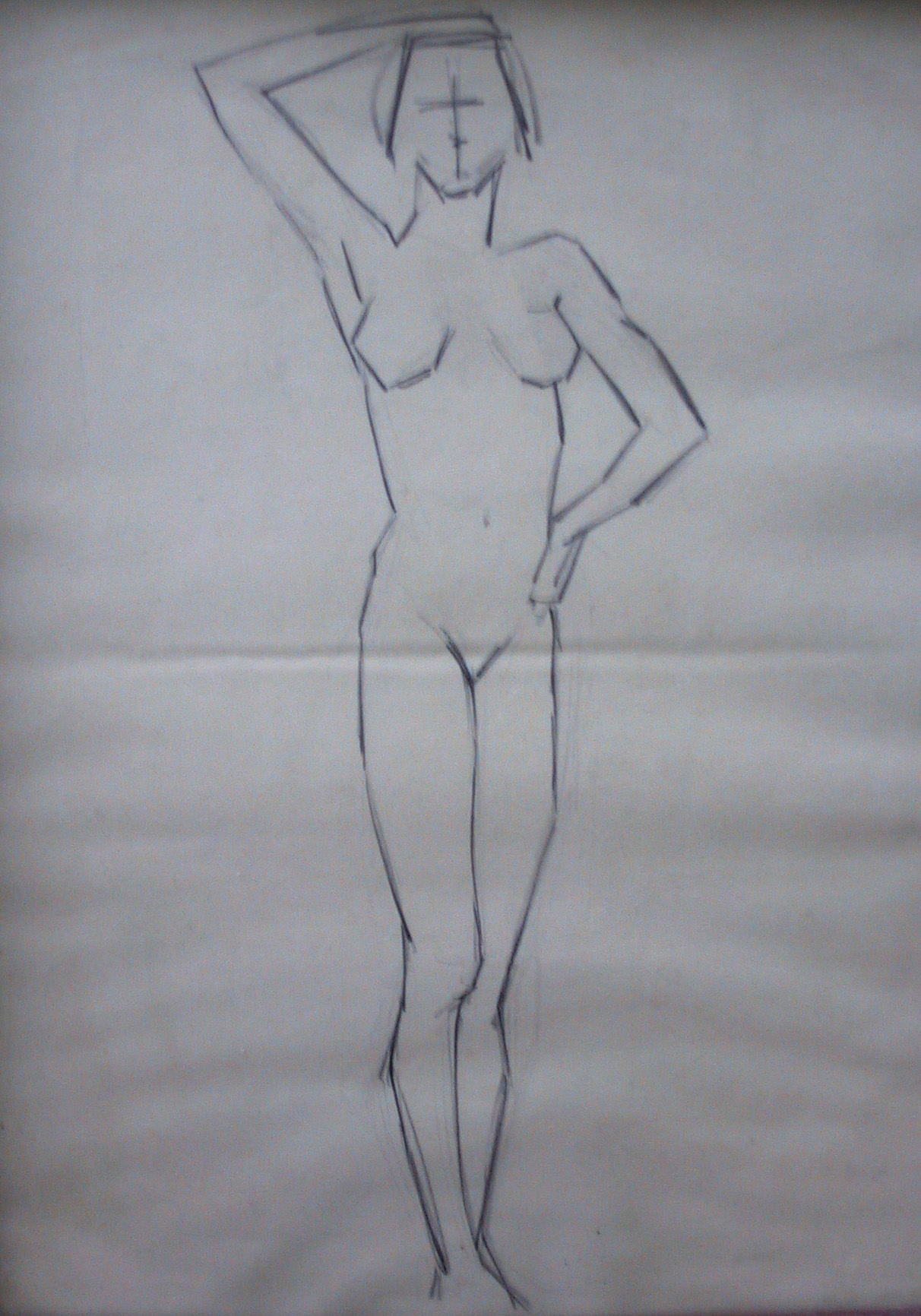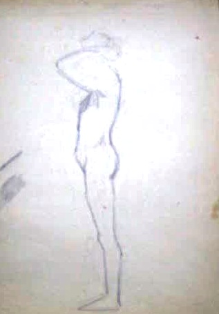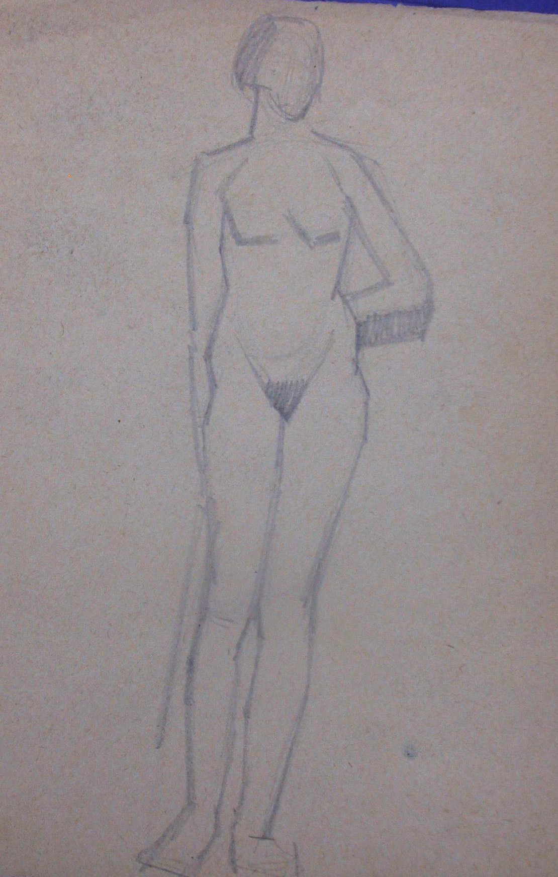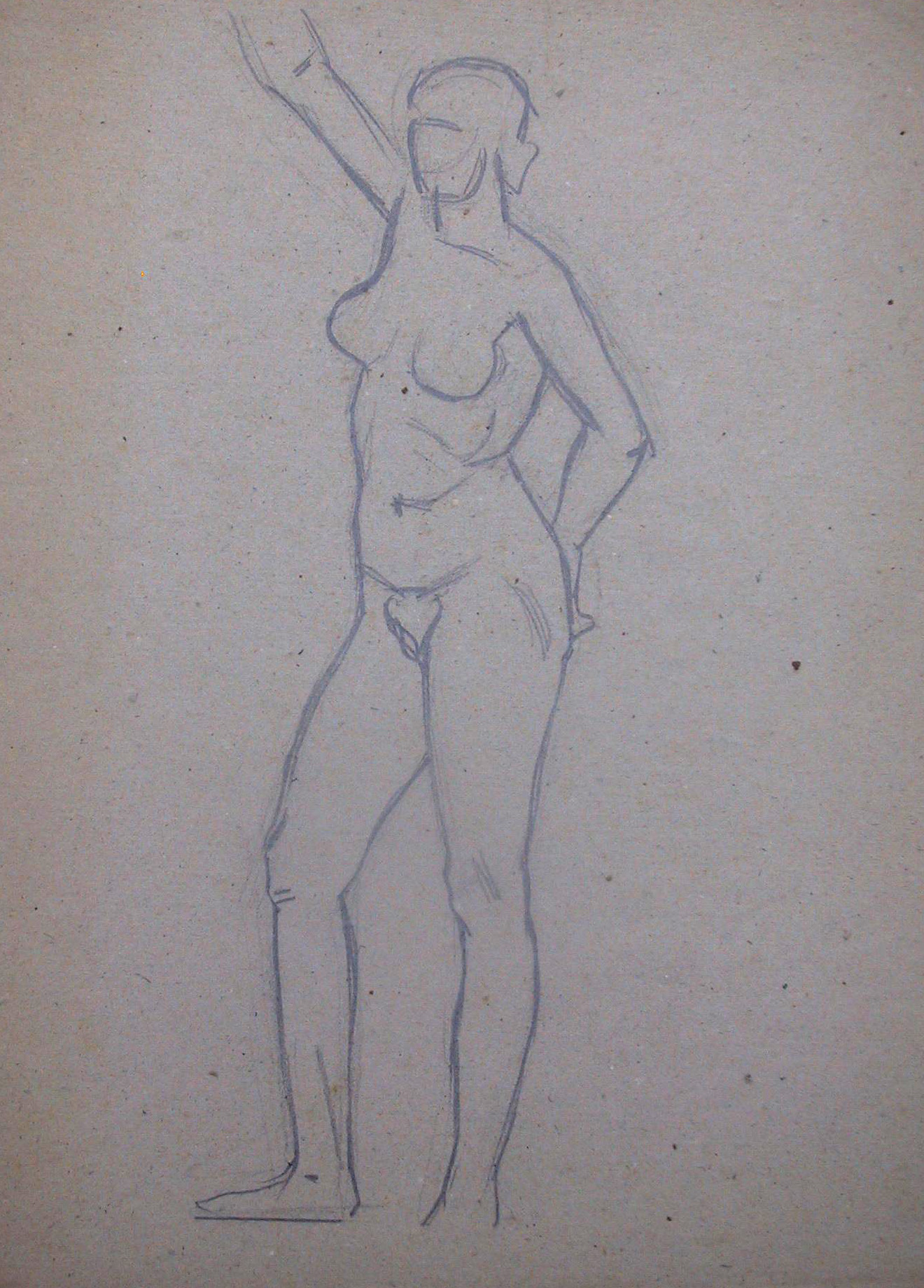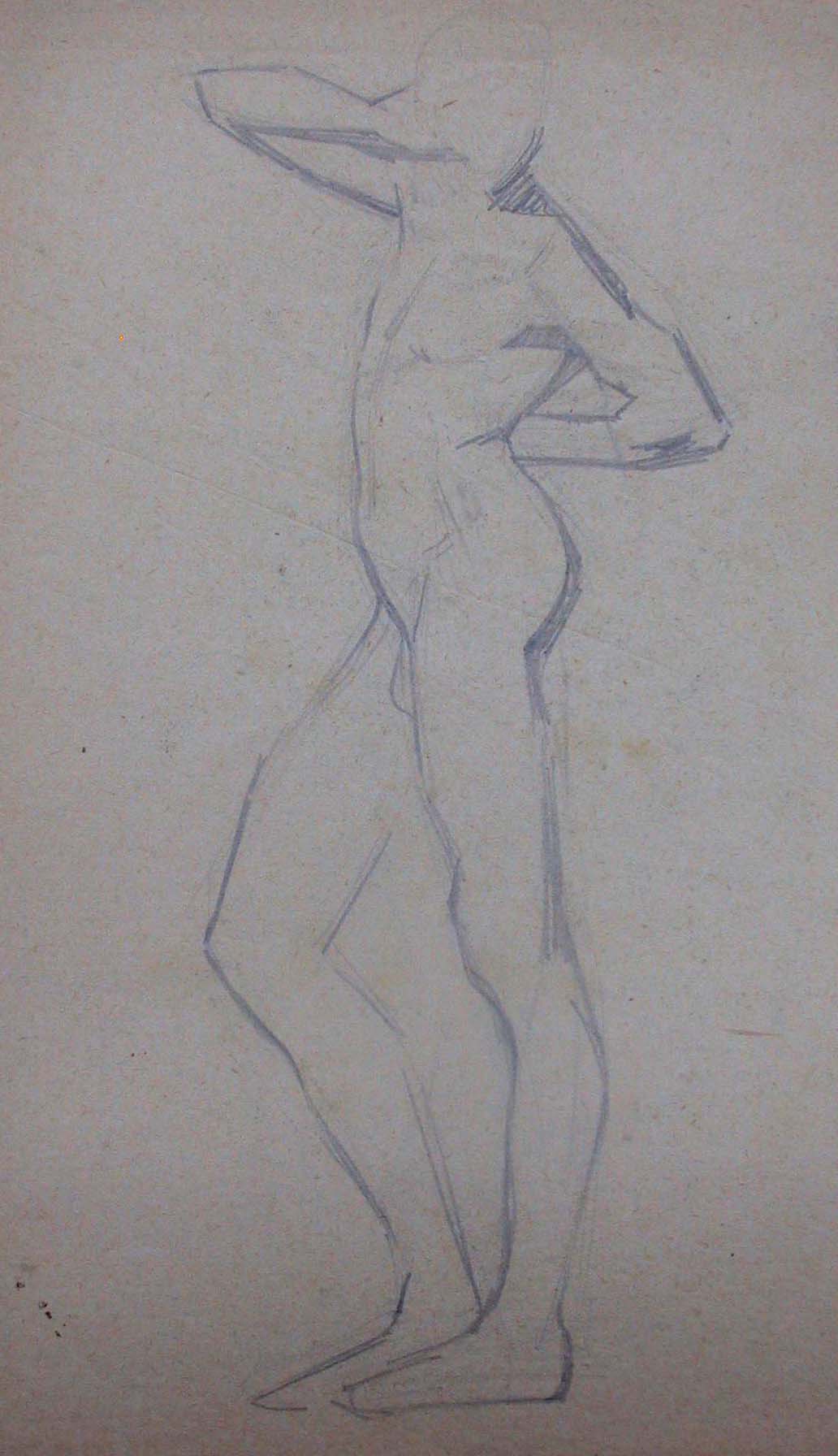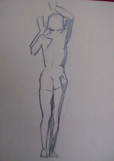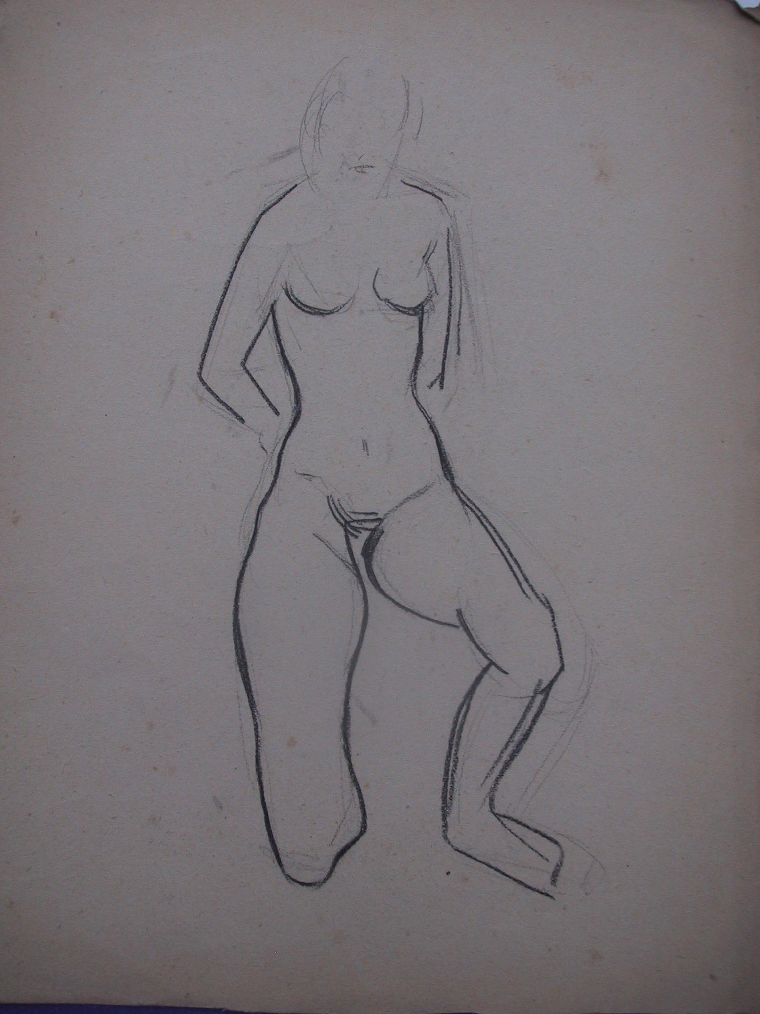 Obra : Mujer de frente con los brazos en alto y manos en la nuca.