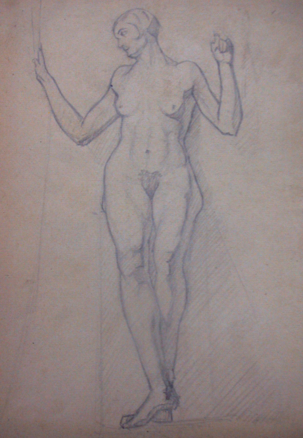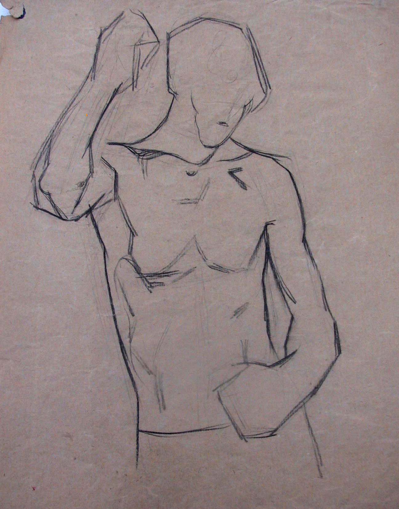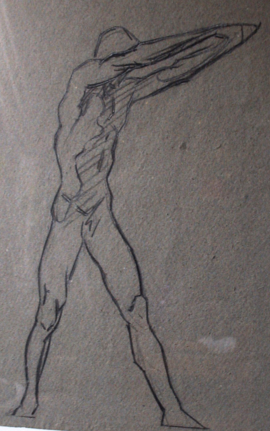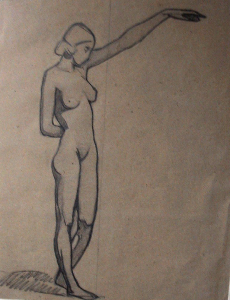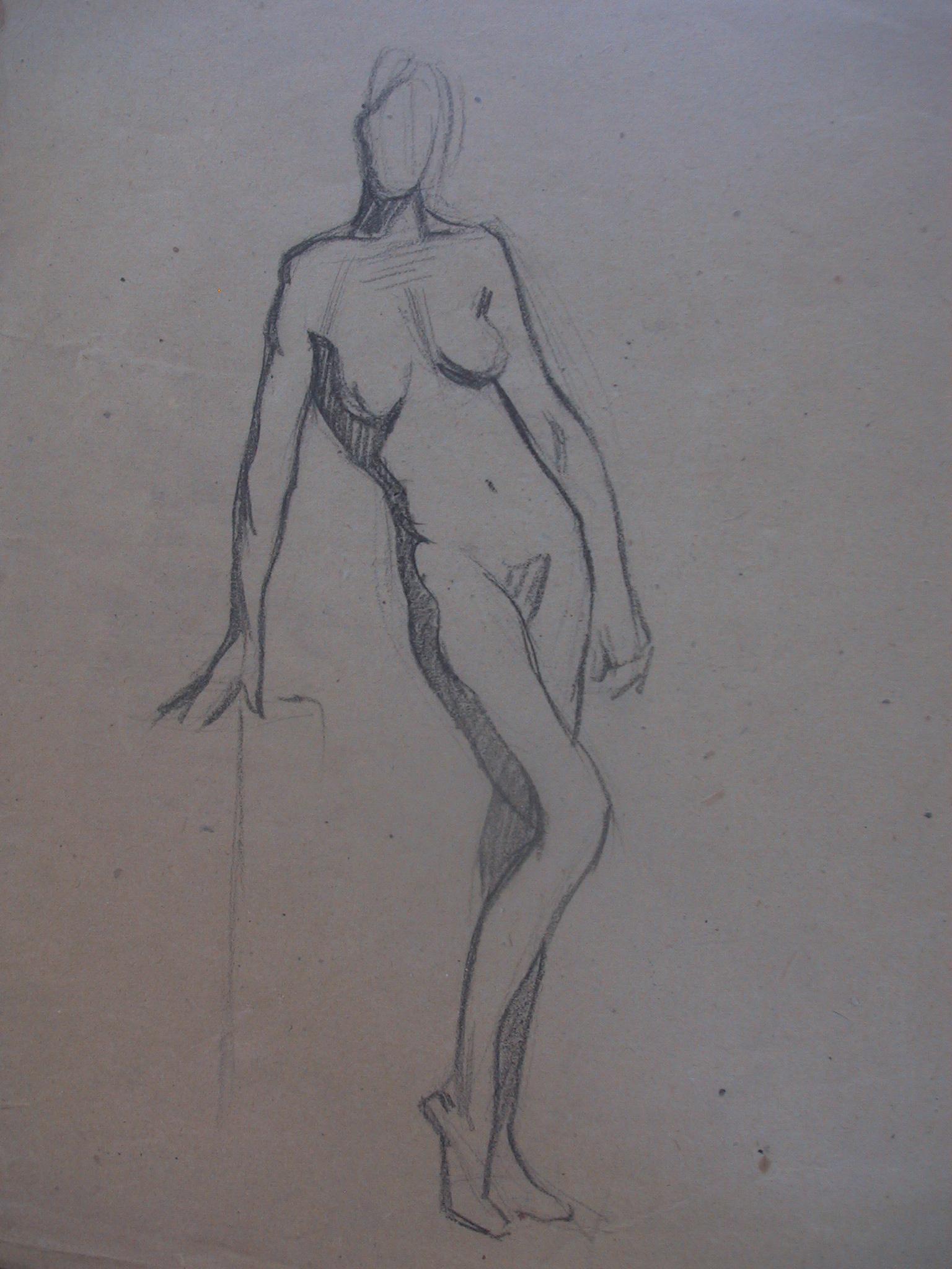 Obra : Mujer de frente con los brazos en alto y manos en la nuca.