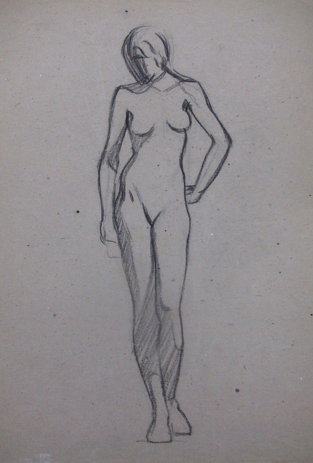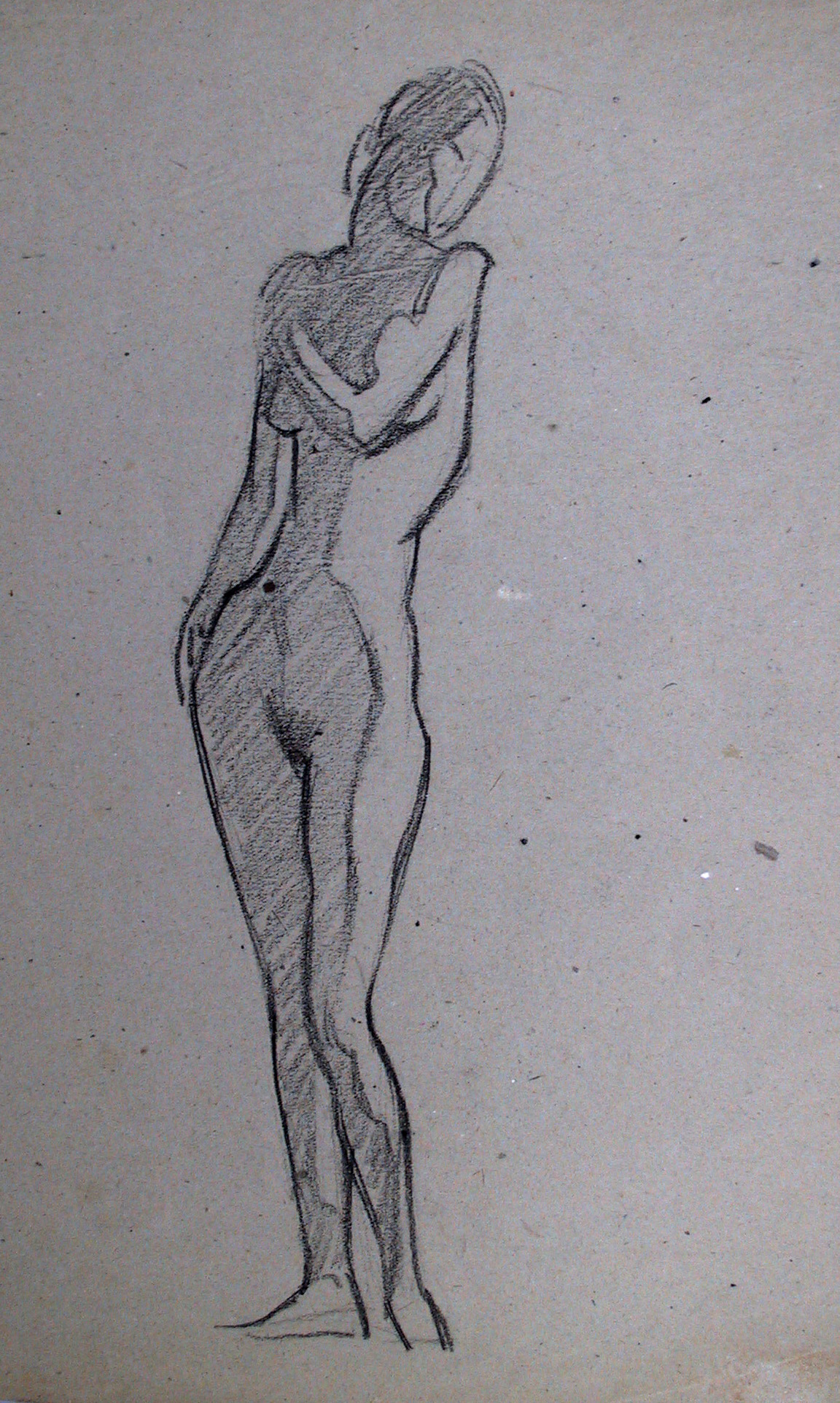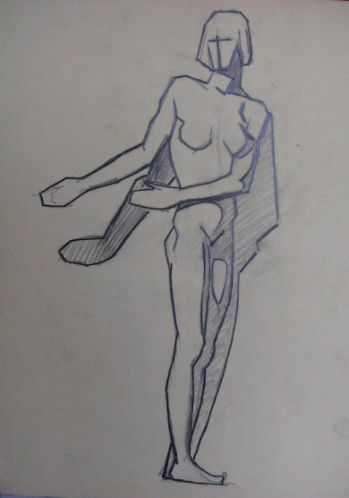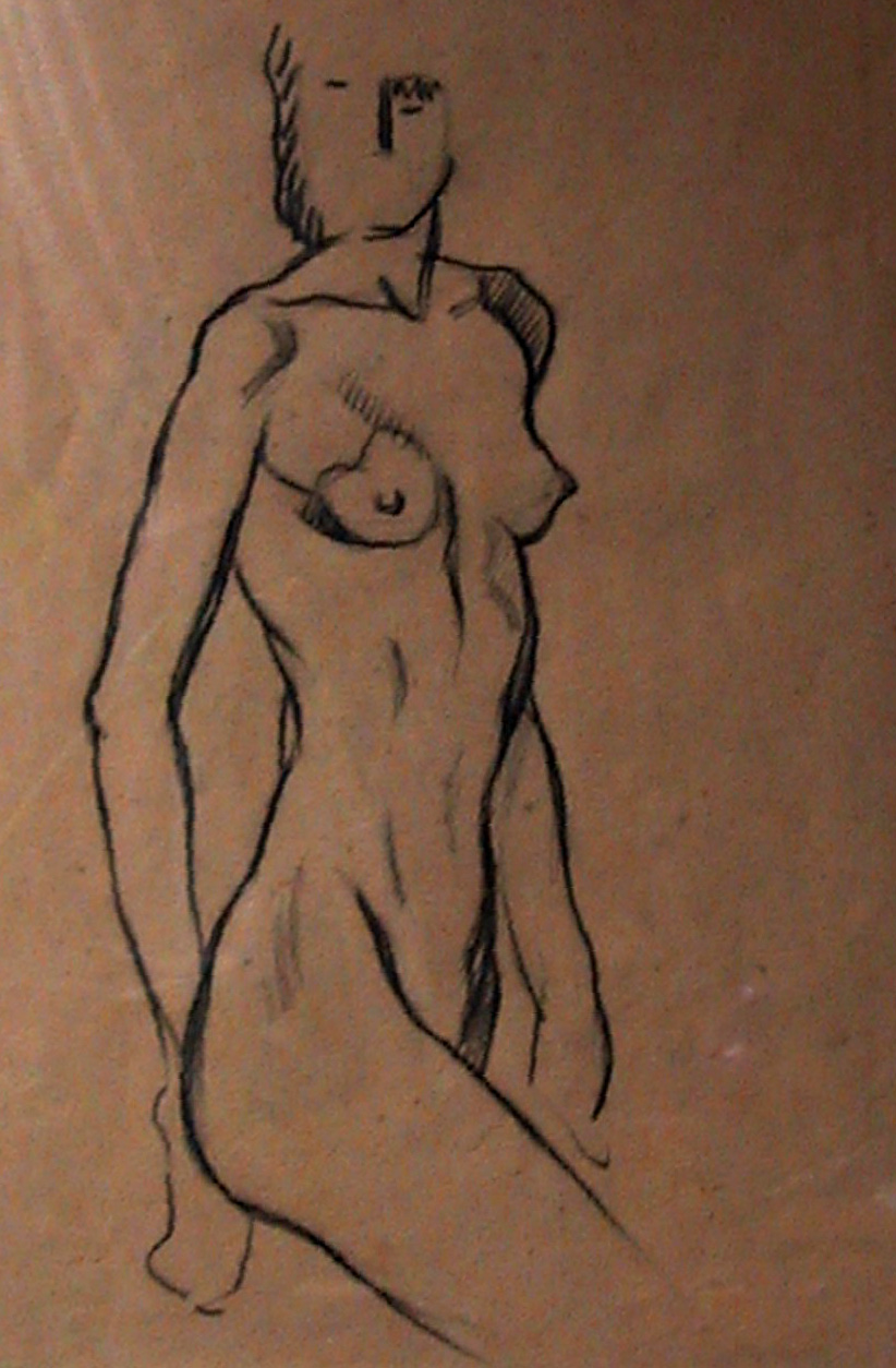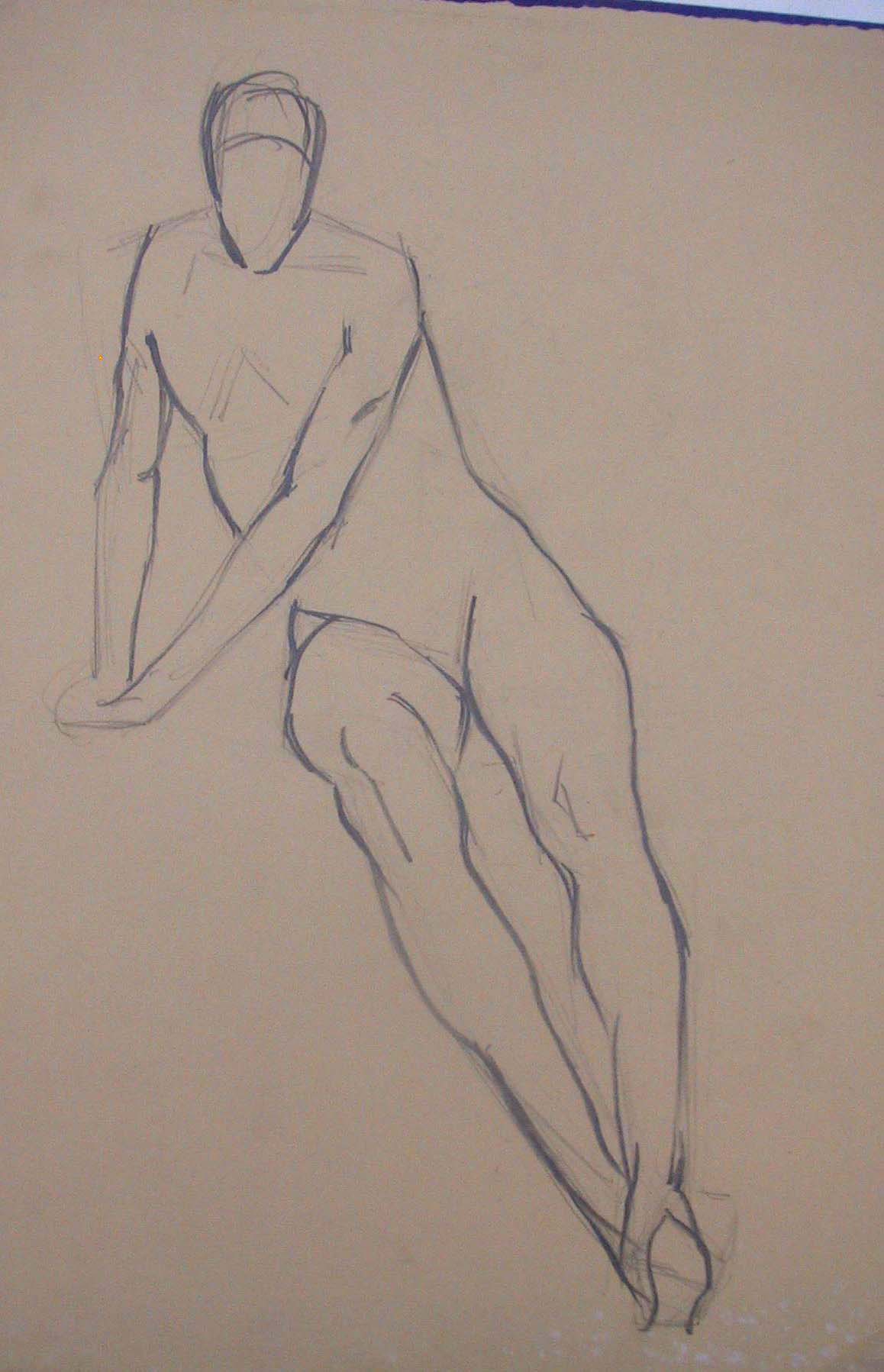 Obra : Mujer de frente con los brazos en alto y manos en la nuca.