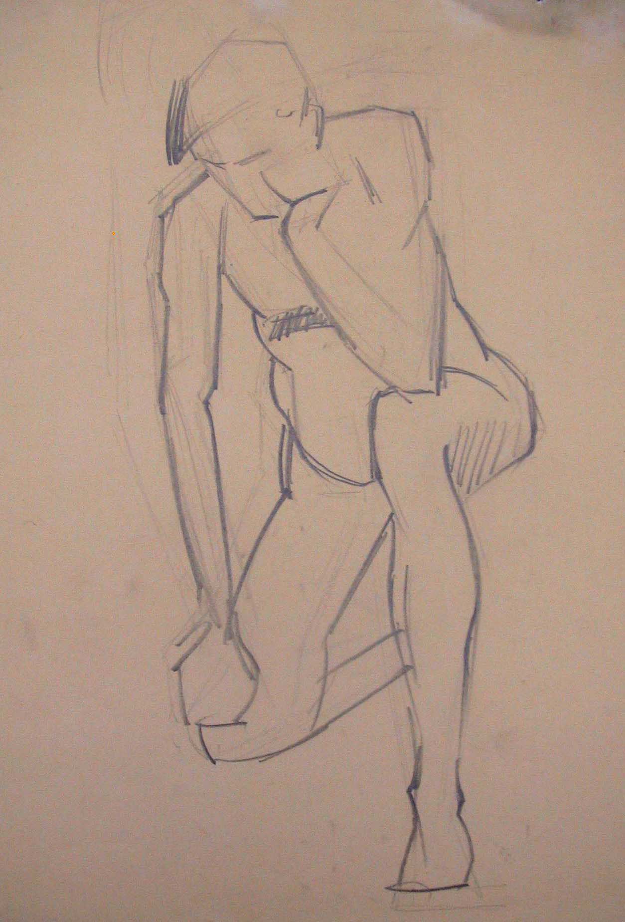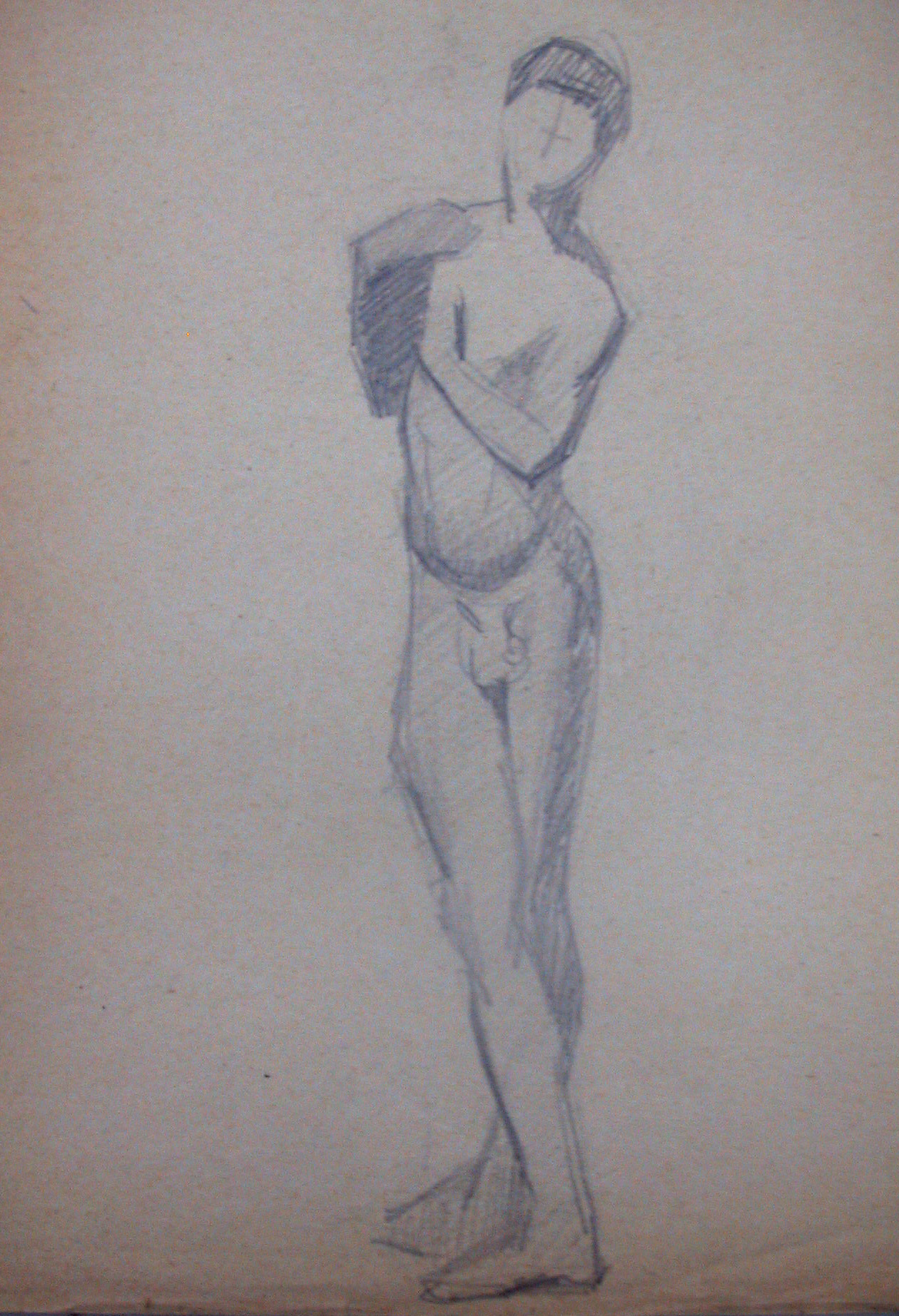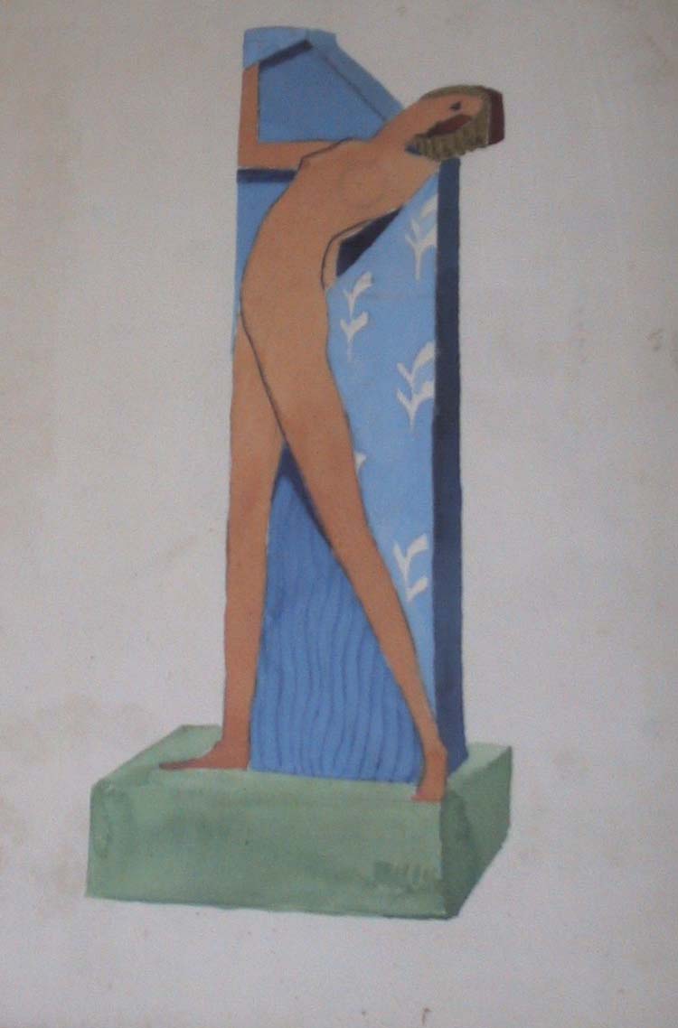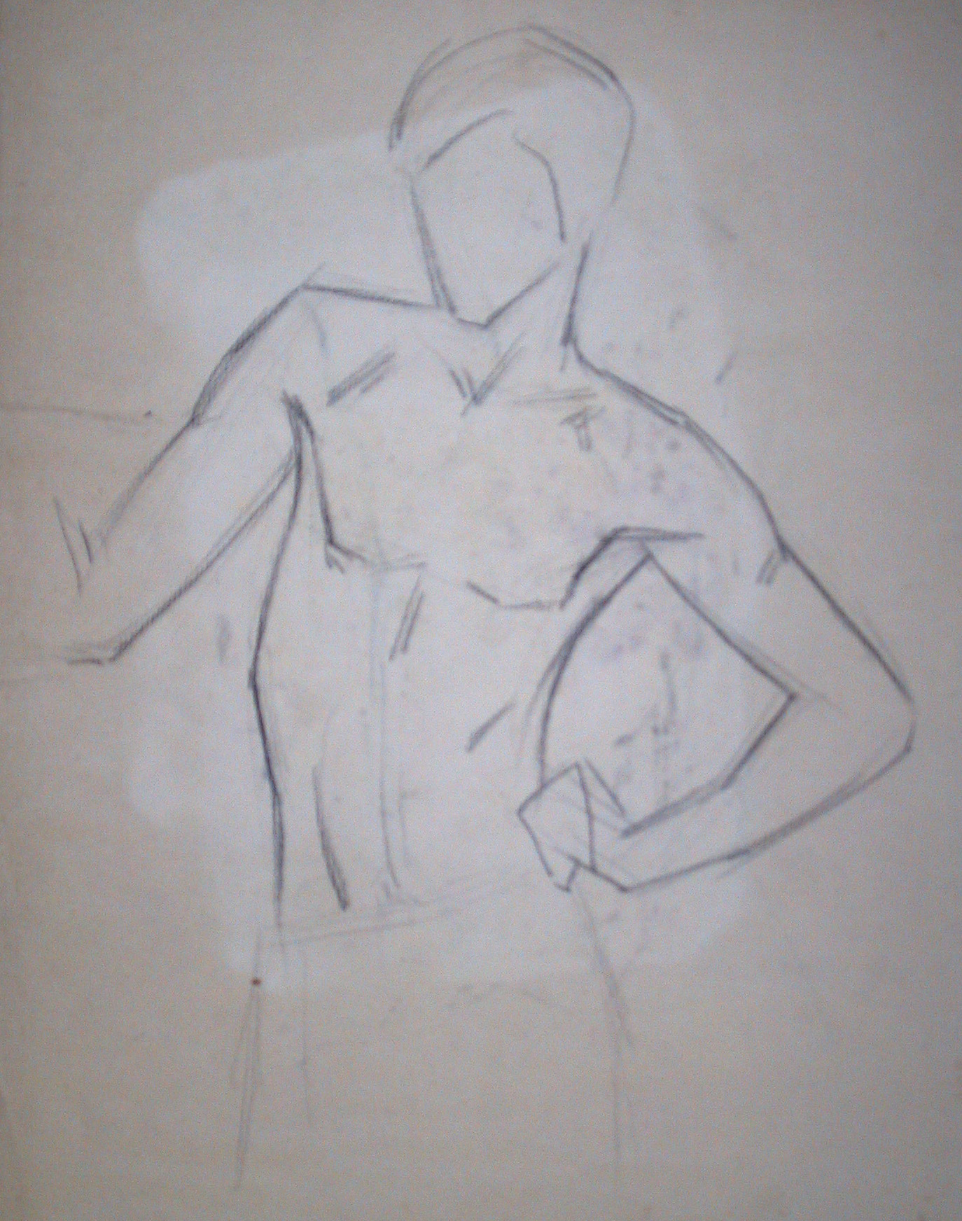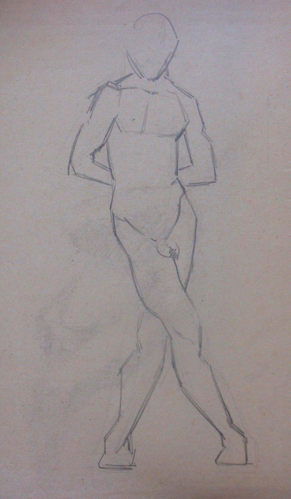 Obra : Mujer de frente con los brazos en alto y manos en la nuca.