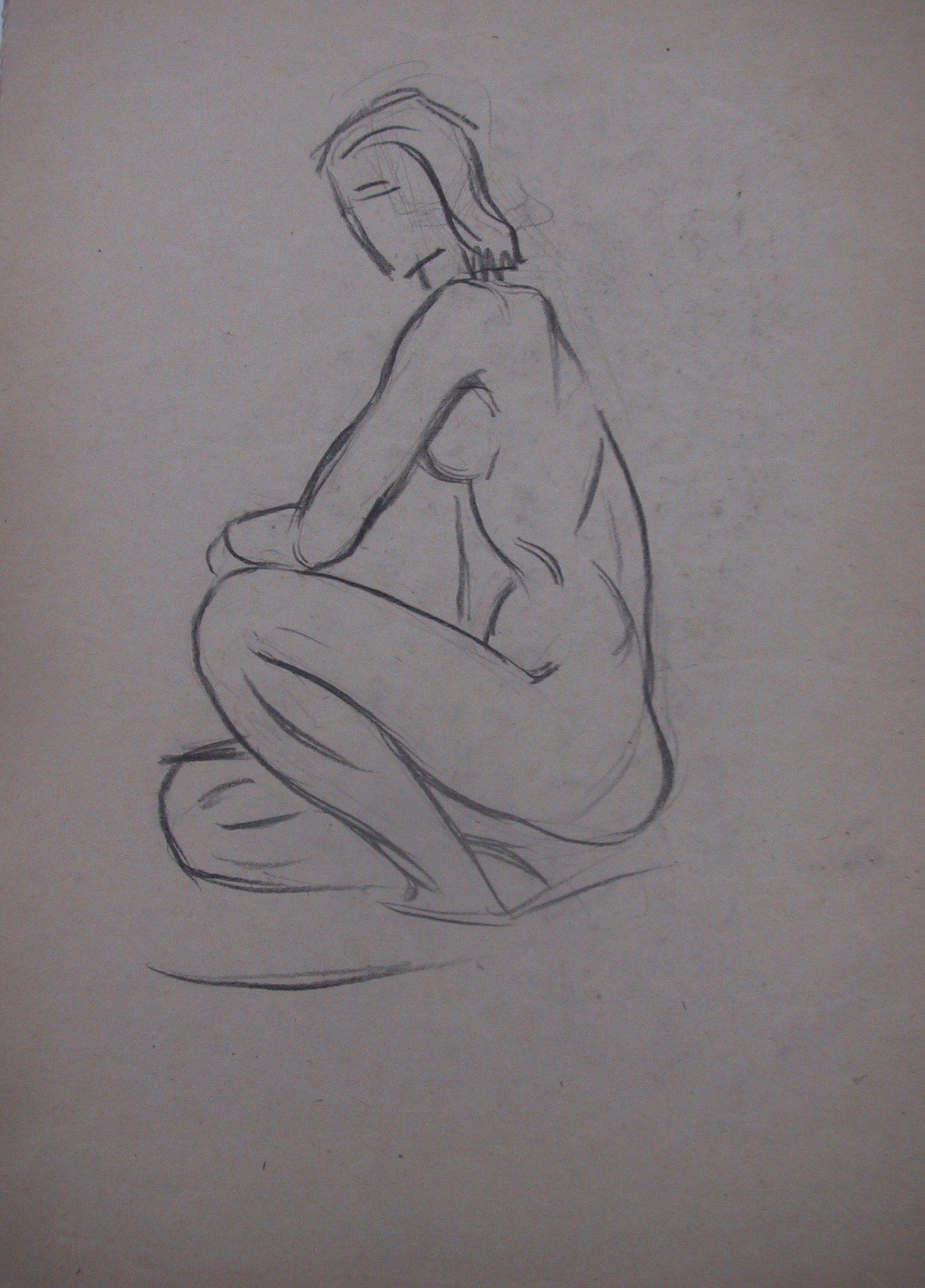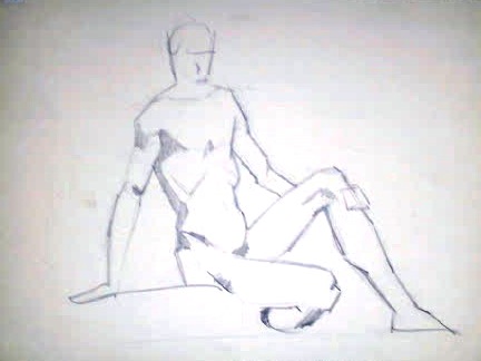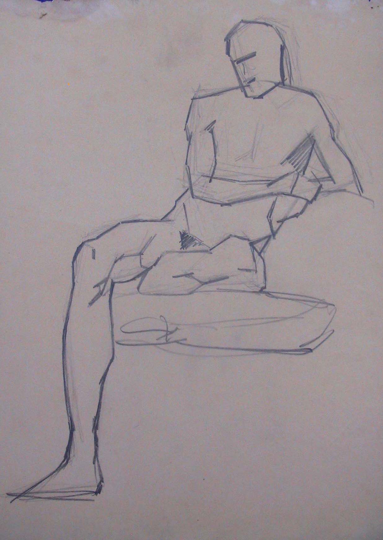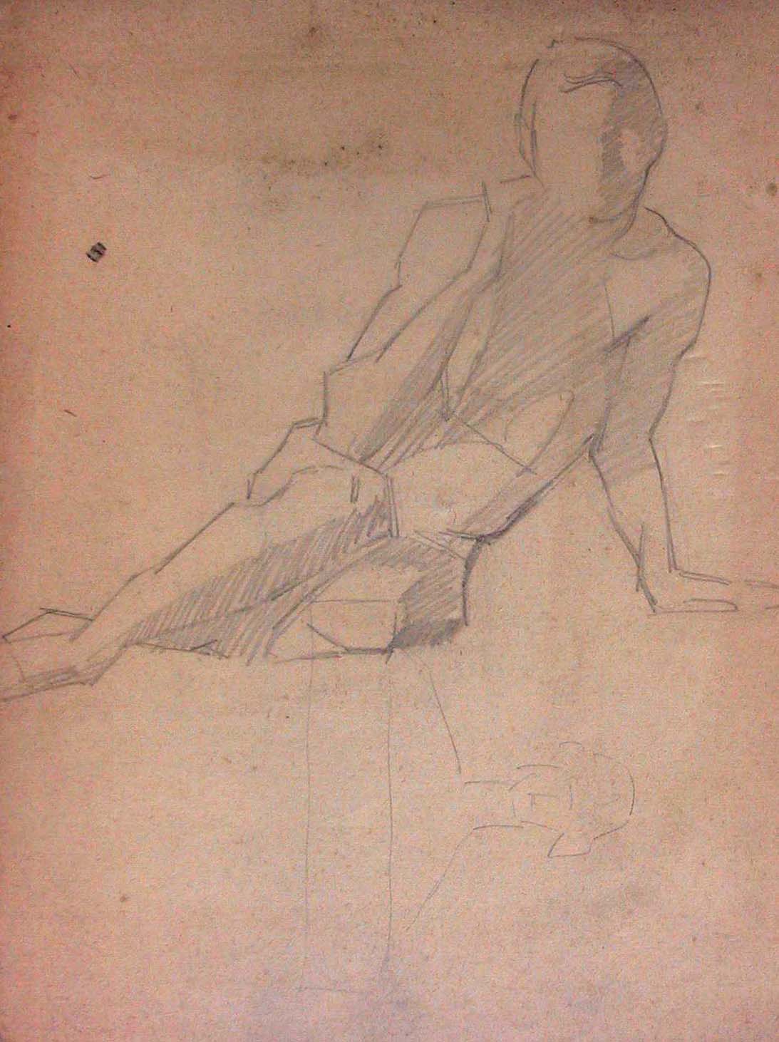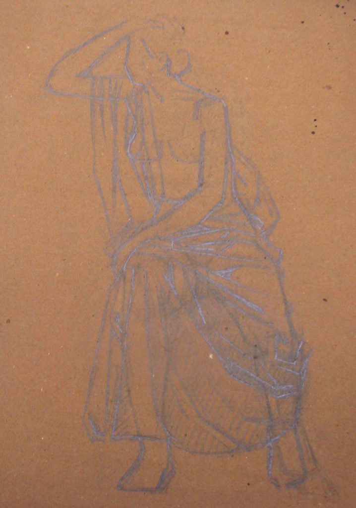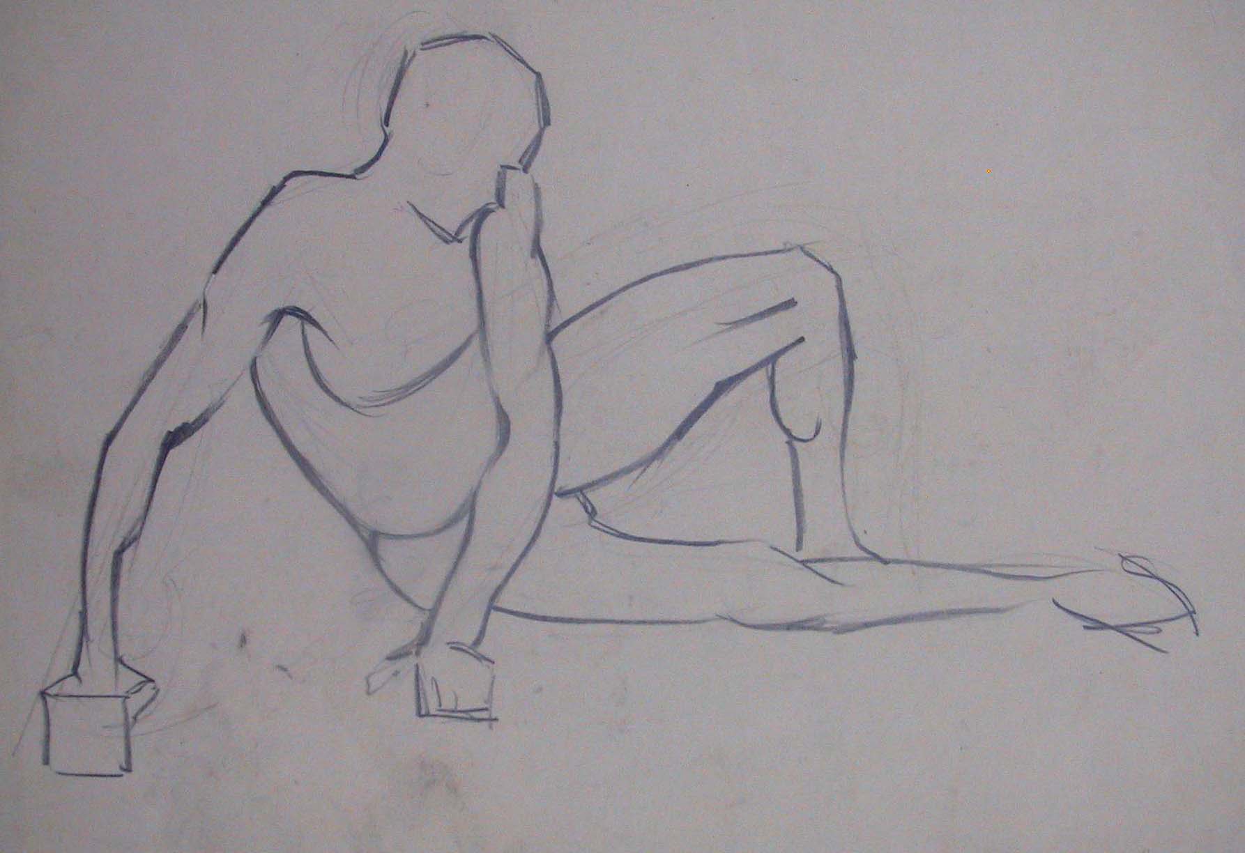 Obra : Mujer sentada en el suelo y apoyándose en la mano derecha.