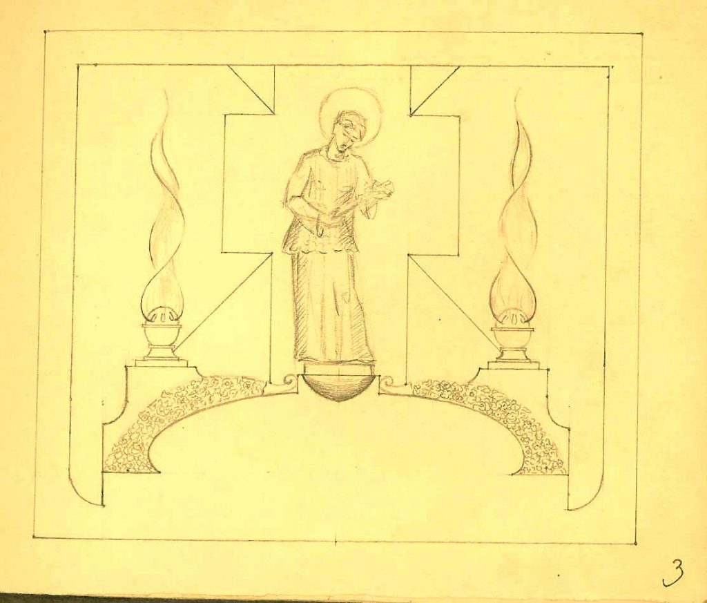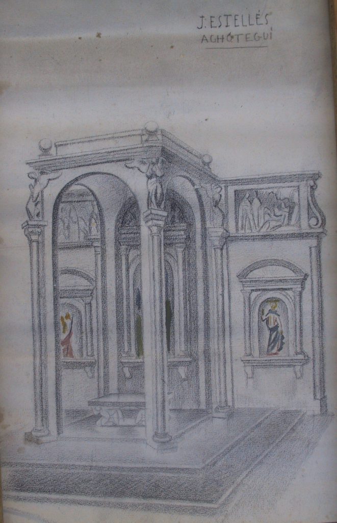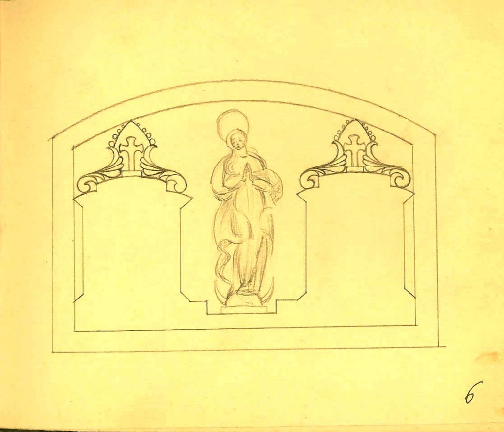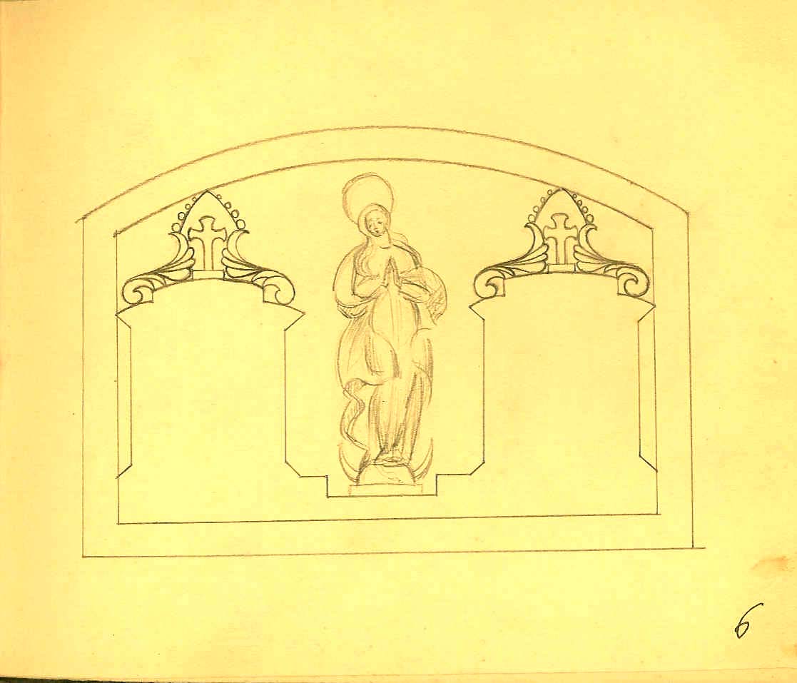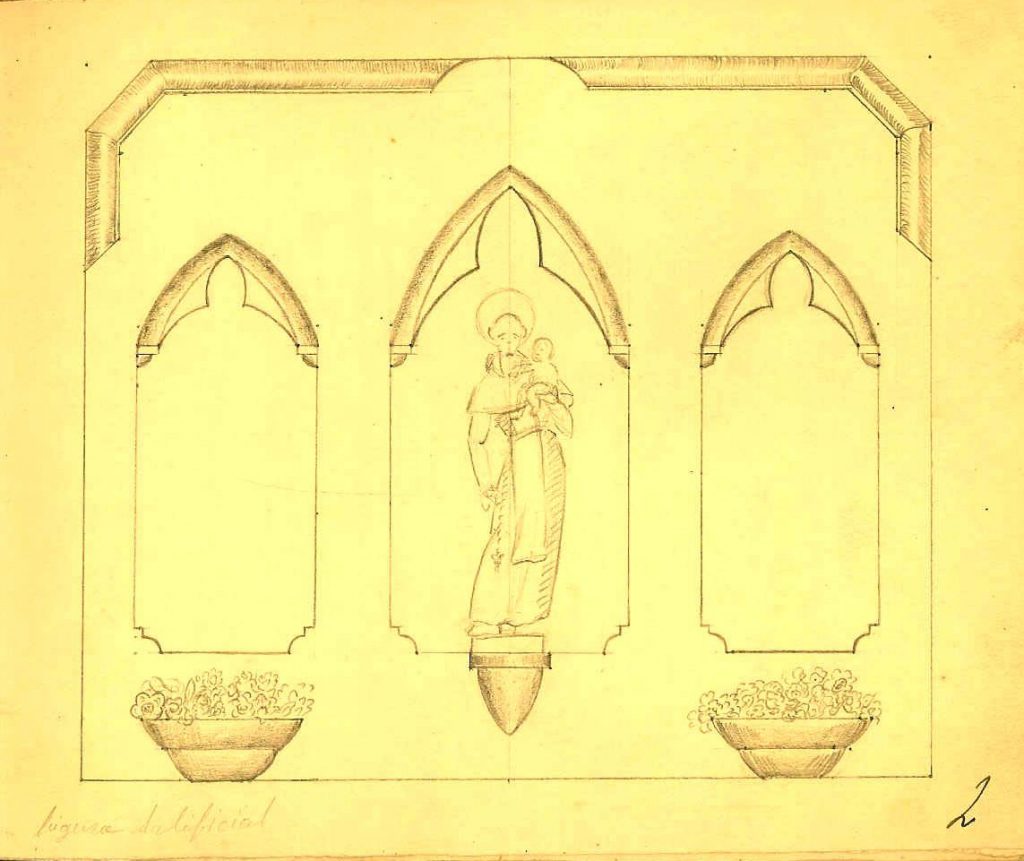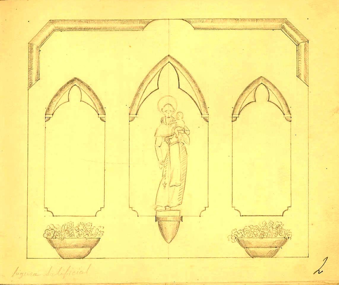 Obra : : Boceto de lapida gotica con tre capillas la central con imagen las laterales para las esquelas.