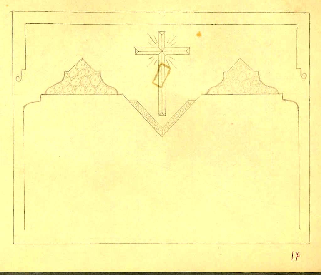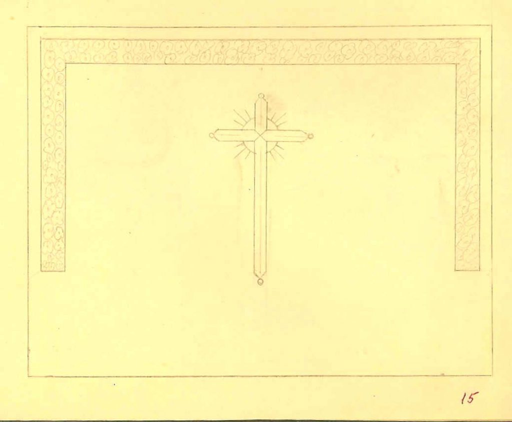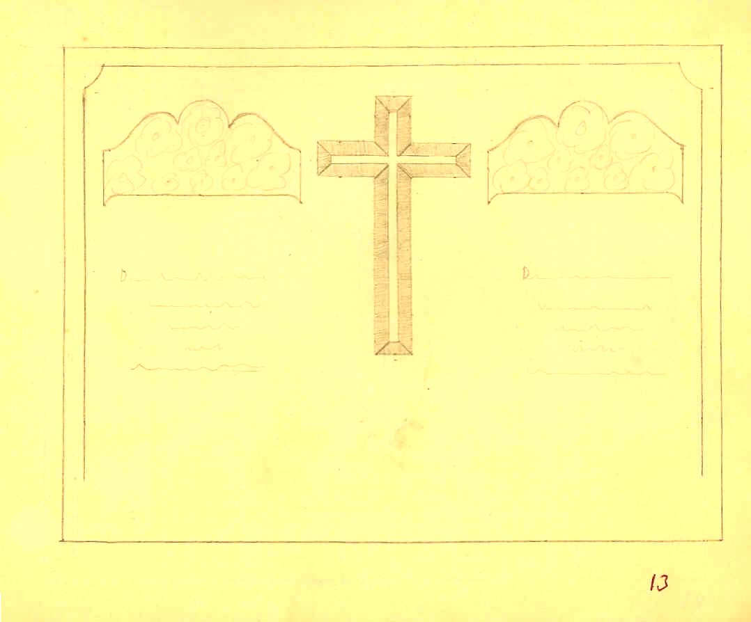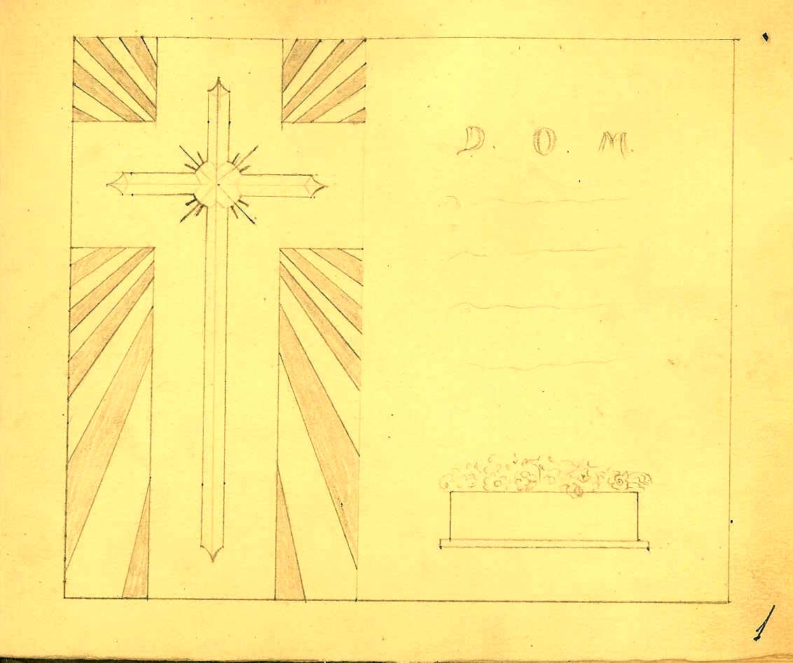 Obra : : Boceto de lapida con una cruz central y espacios para las inscripciones.