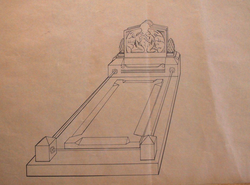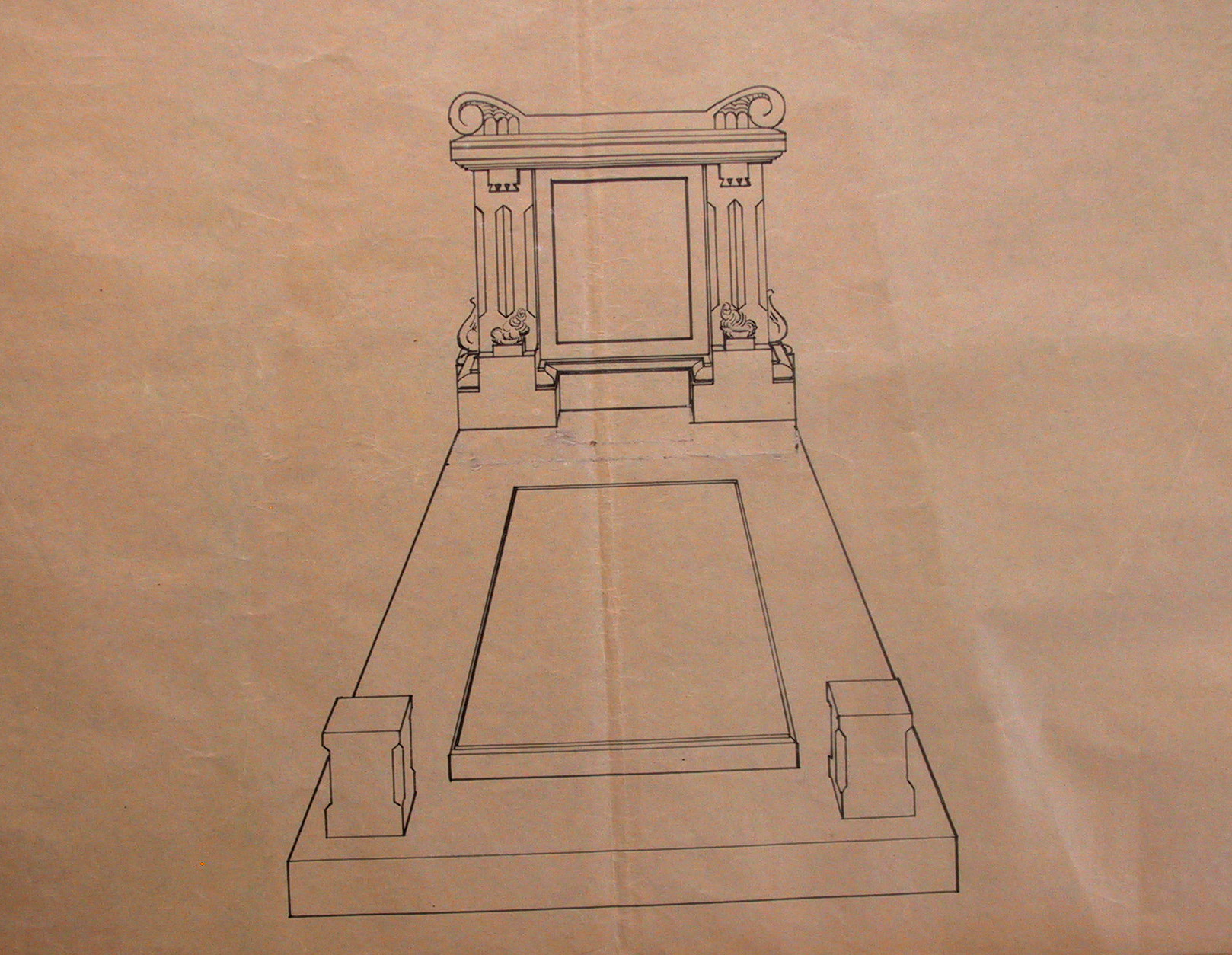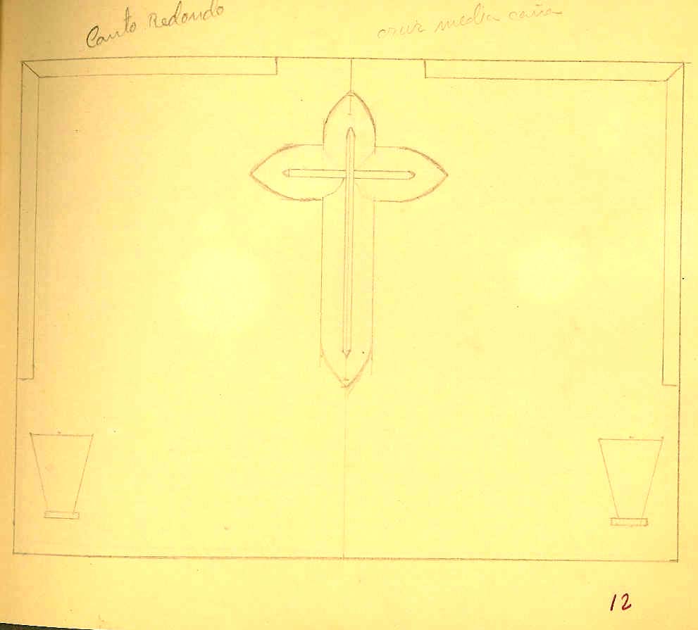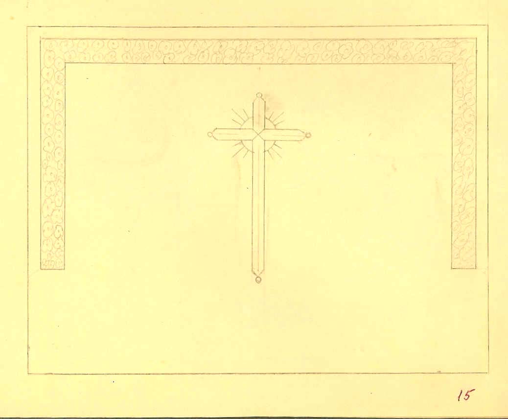 Obra : : Boceto de lapida con una cruz central y espacios para las inscripciones.