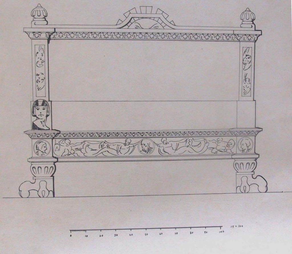 Obra : Boceto proyecto cabezal de cama en madera con tallas y bajorrelieves.