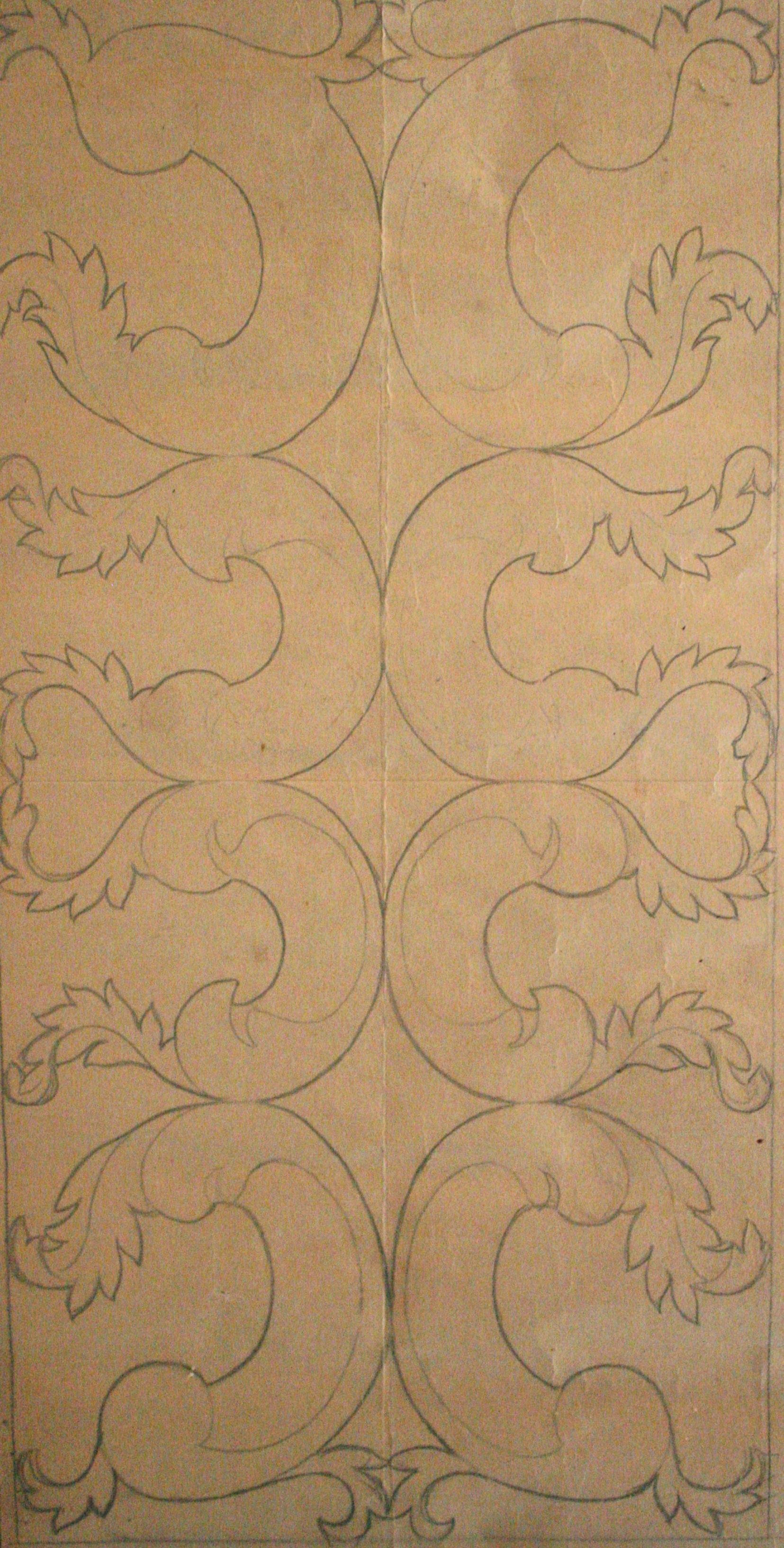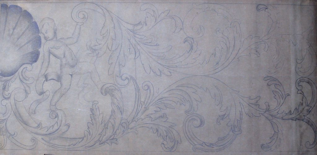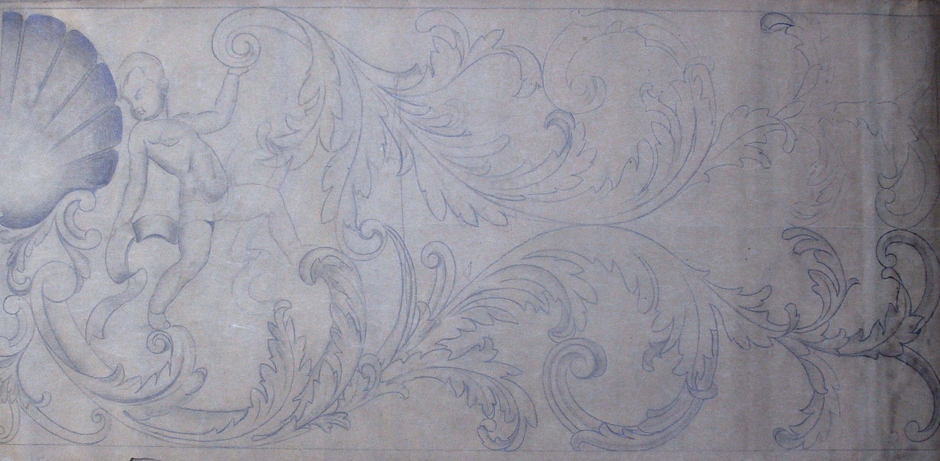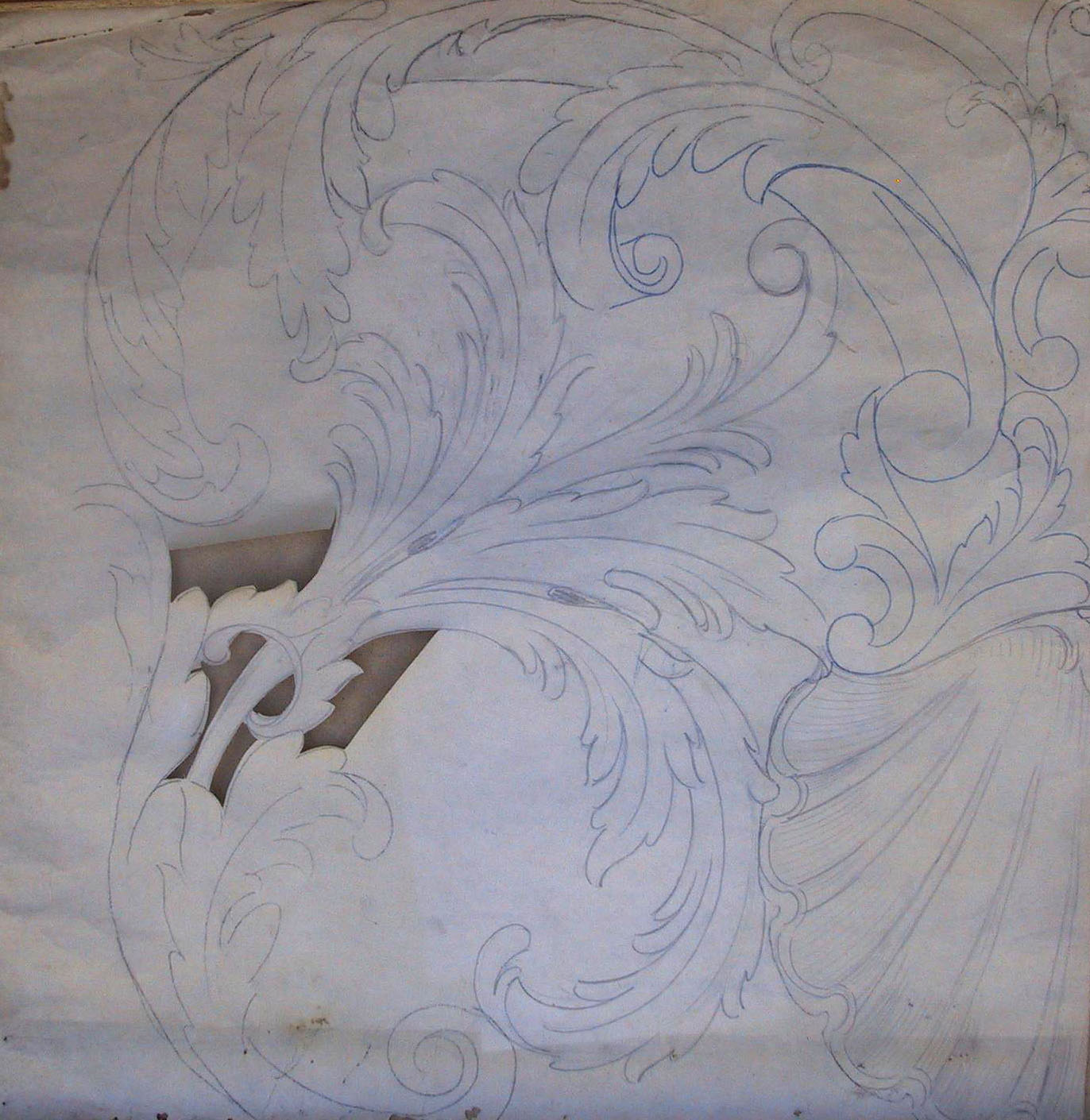 Obra : Dibujo de niño con hojas de acanto. son los dibujos originales de los bajorrelieves de la parroquia de godella .