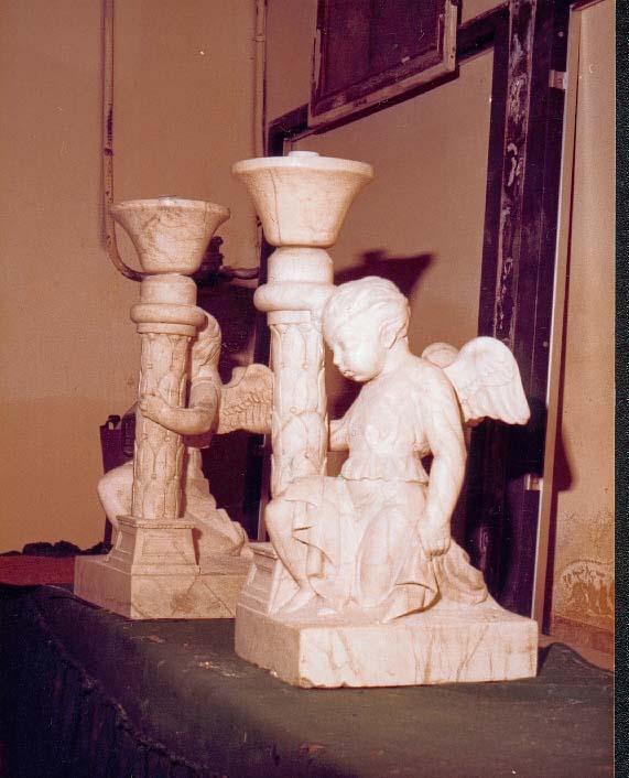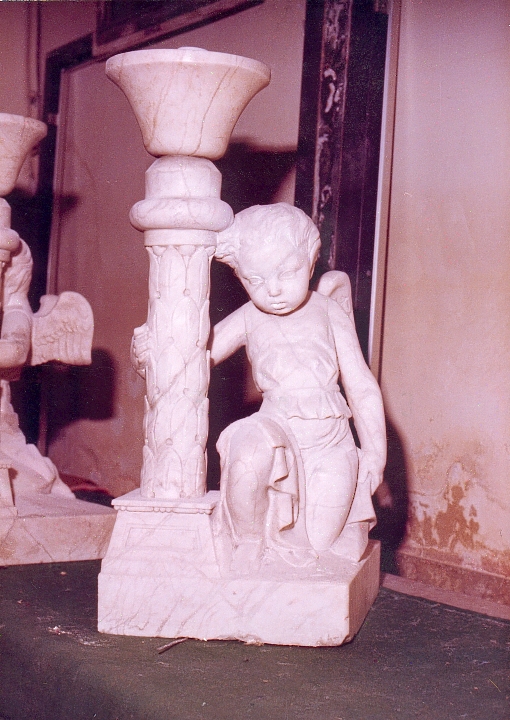 Obra : Niños alados con la peana de una farola, forma parte del comulgatorio que fue destrozado quedando estos niños separados de su pieza original.